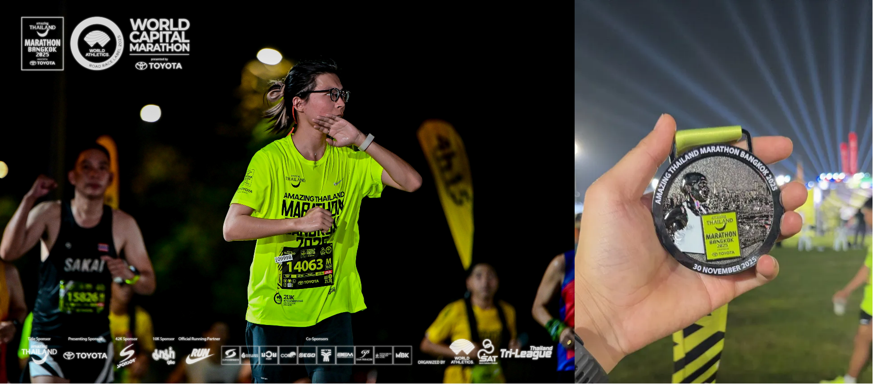 3、Fran老师赛场英姿;泰国曼谷惊喜马拉松完赛奖牌