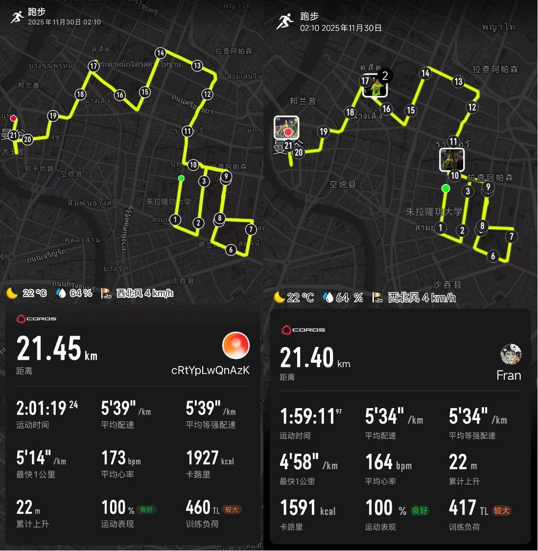 2、杀老师首半马成绩;Fran首半马成绩
