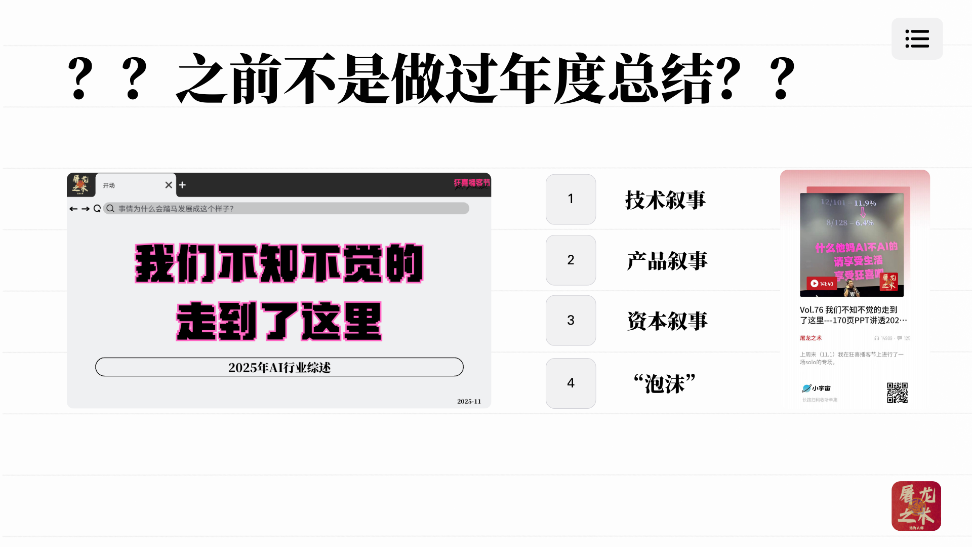狂喜播客节的时候(2025/11/03)我做过一次关于AI行业的年度整理,
