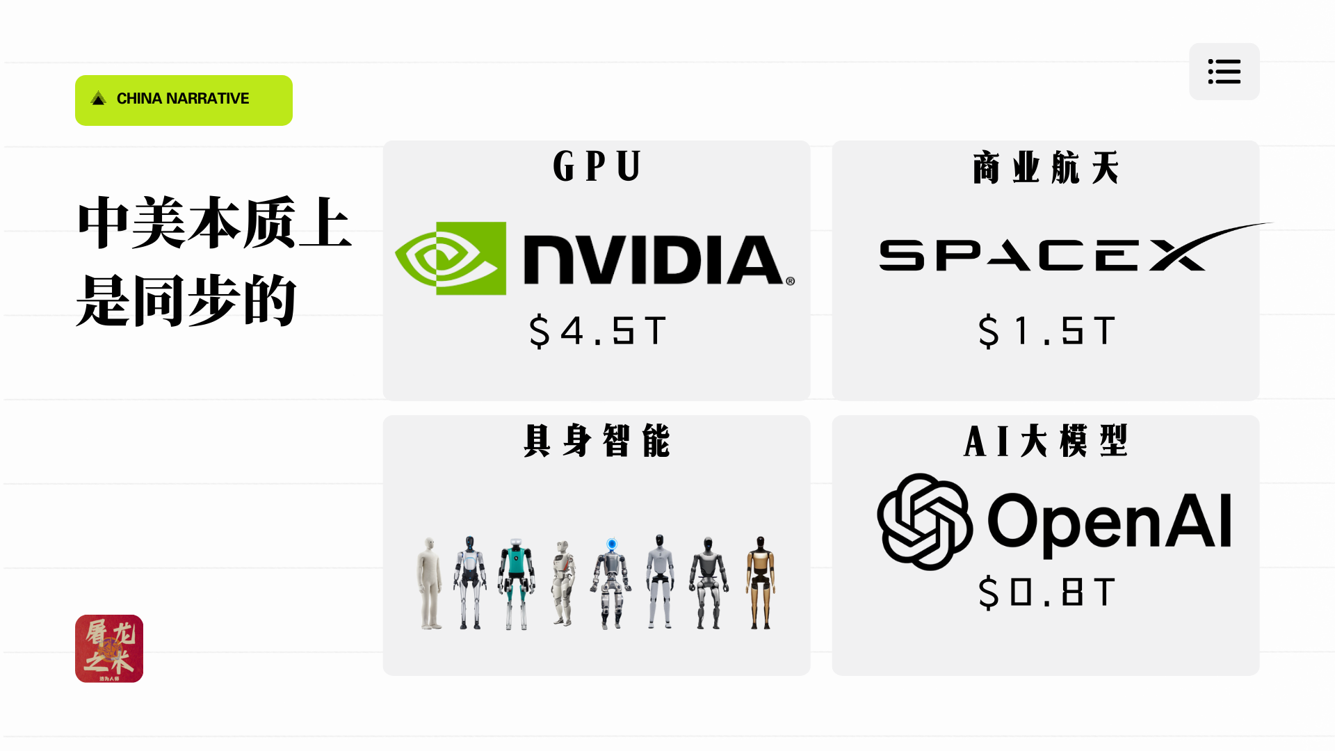 这次PPT的设计和去年年底我做的年度整理类似,我再次用了中美对抗的视角;