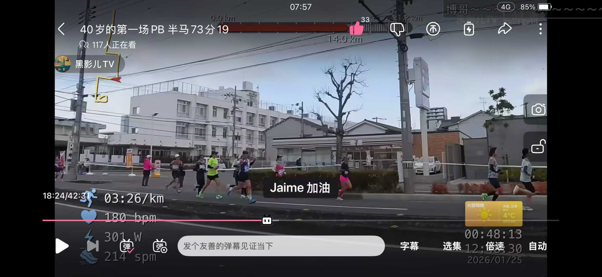 2026年1月25日,黑影儿TV李博迎来了新年的第一场比赛:大阪半马;在同一天,节目主播Jaime也跑了新年的第一场全马:大阪国际女子马拉松。感谢跑步和赛事,让我们再次相遇。先恭喜李博的半马PB:73分19秒!
