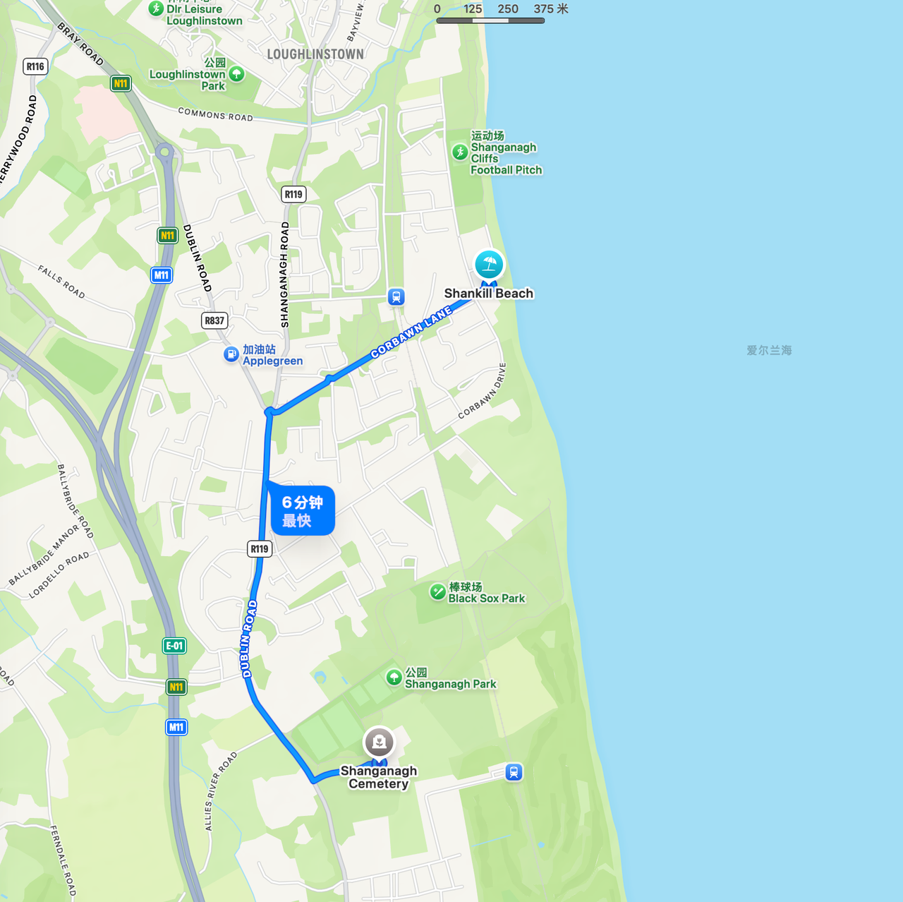 尚加纳公墓到海边沙滩的距离