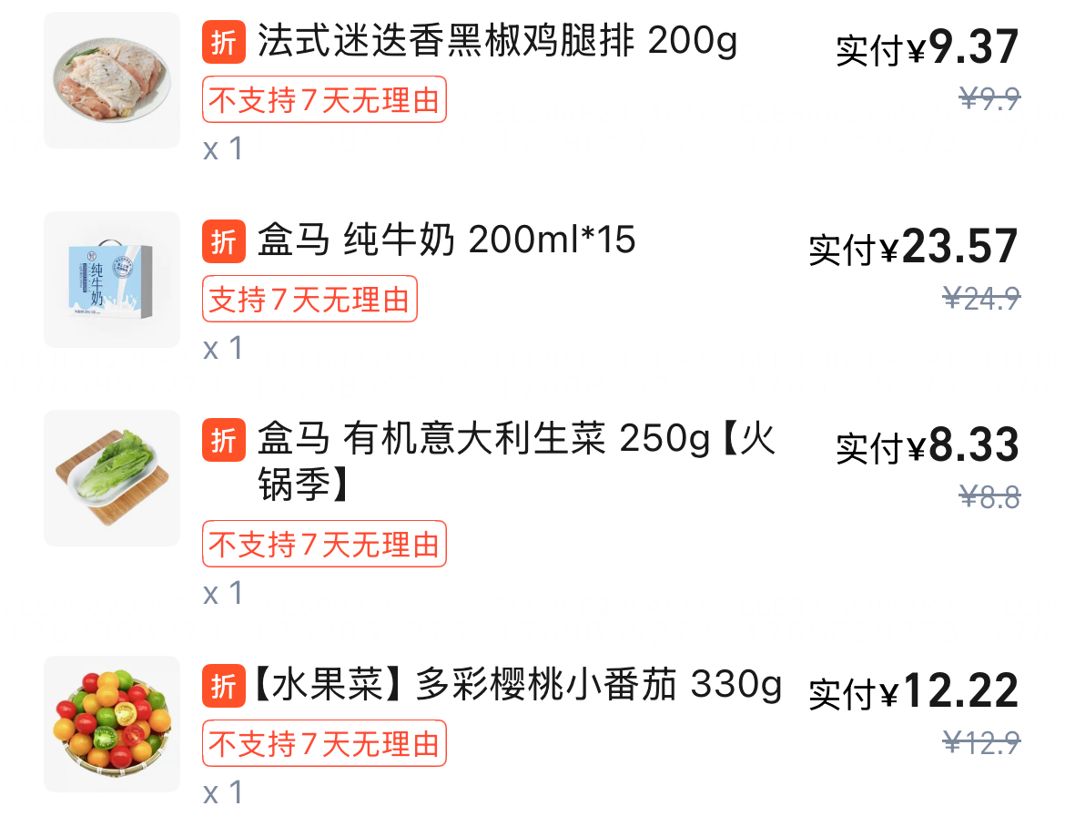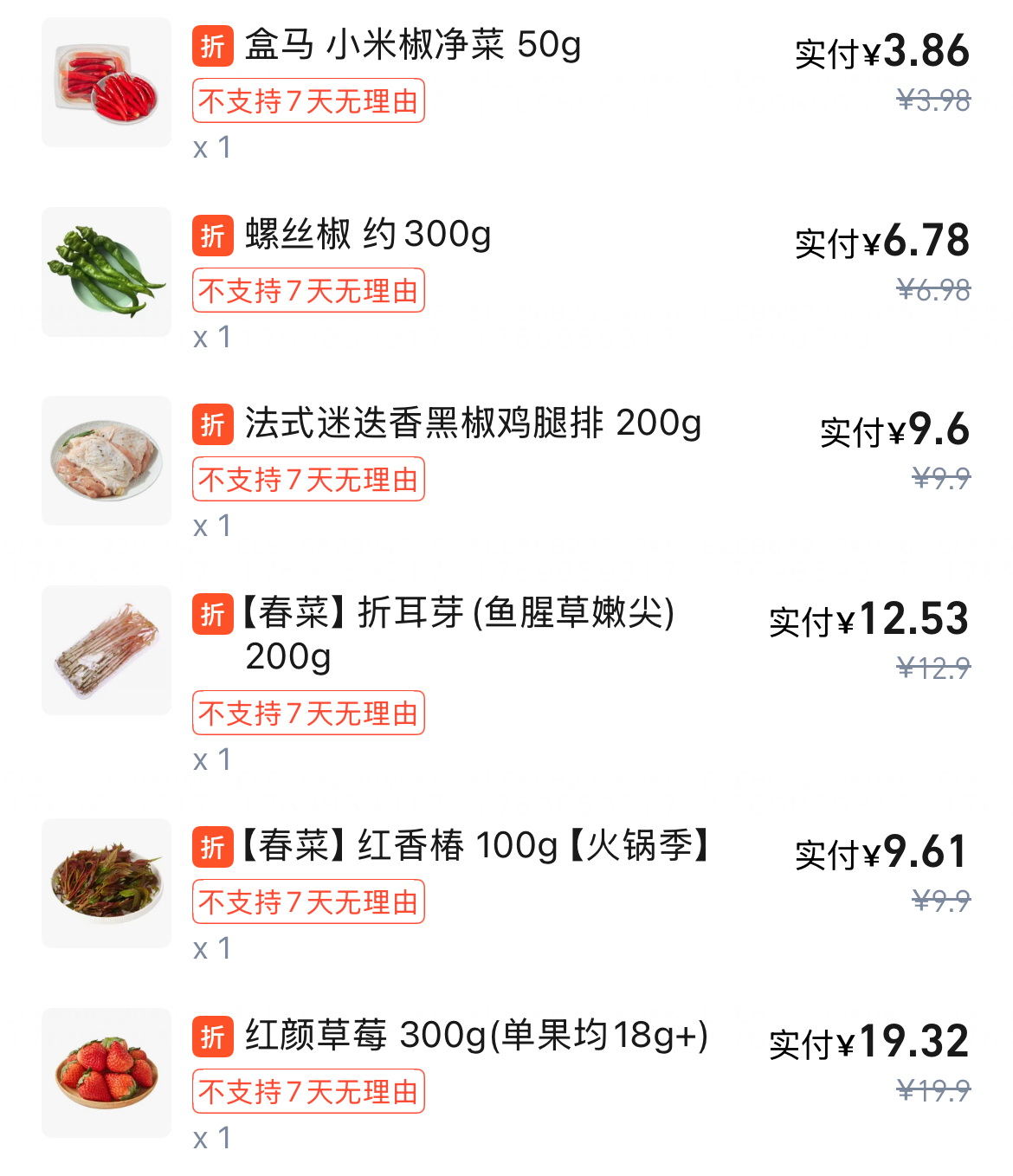 省流:买了四次盒马,每天自己做早饭晚饭,心理健康程度大幅上升。 采购No.1(2026.01.25)👇 采购No.2(2026.01.25)👇 采购No.3(2026.01.31)👇 采购No.4(2026.01.31)👇