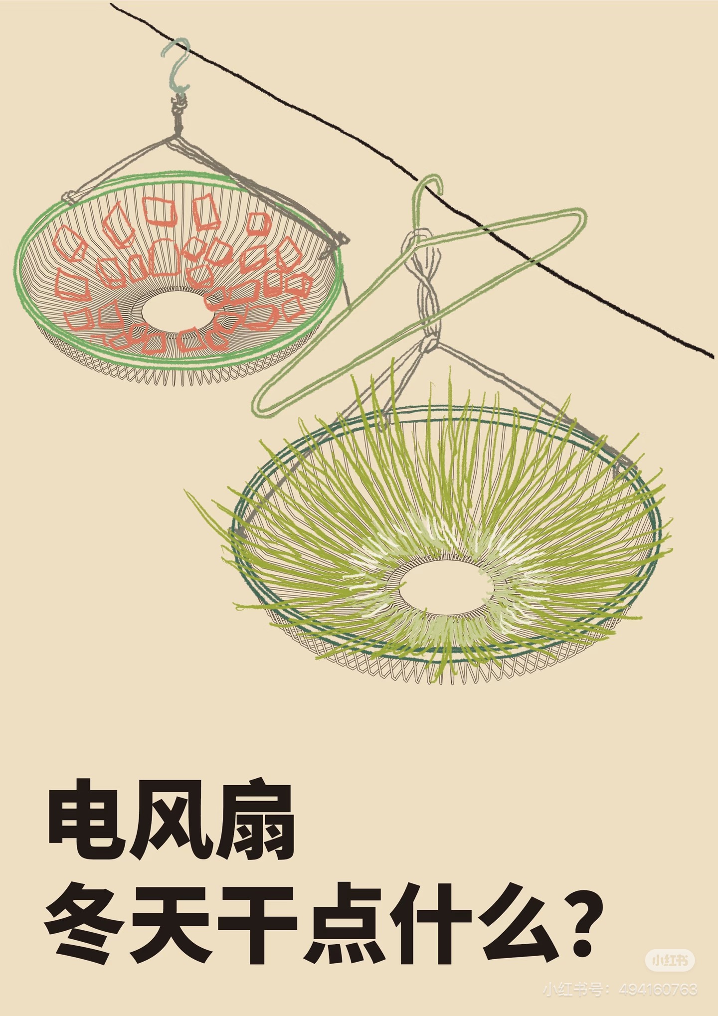 将居民利用电风扇高效风干葱和腊肉的生活智慧,解构成清晰的图示,展现日常中的创造性。