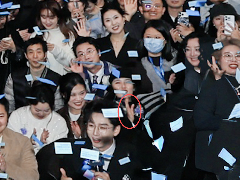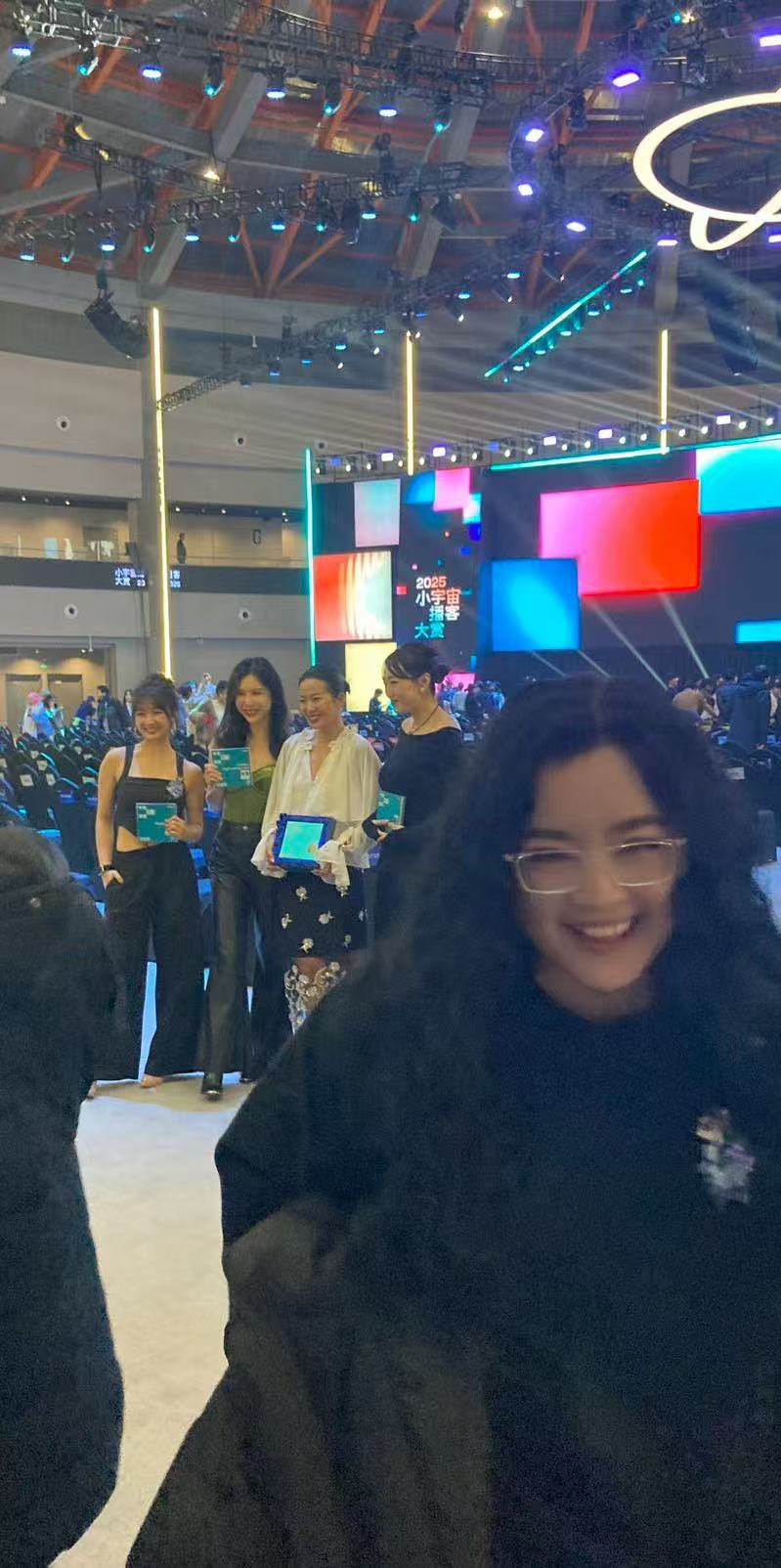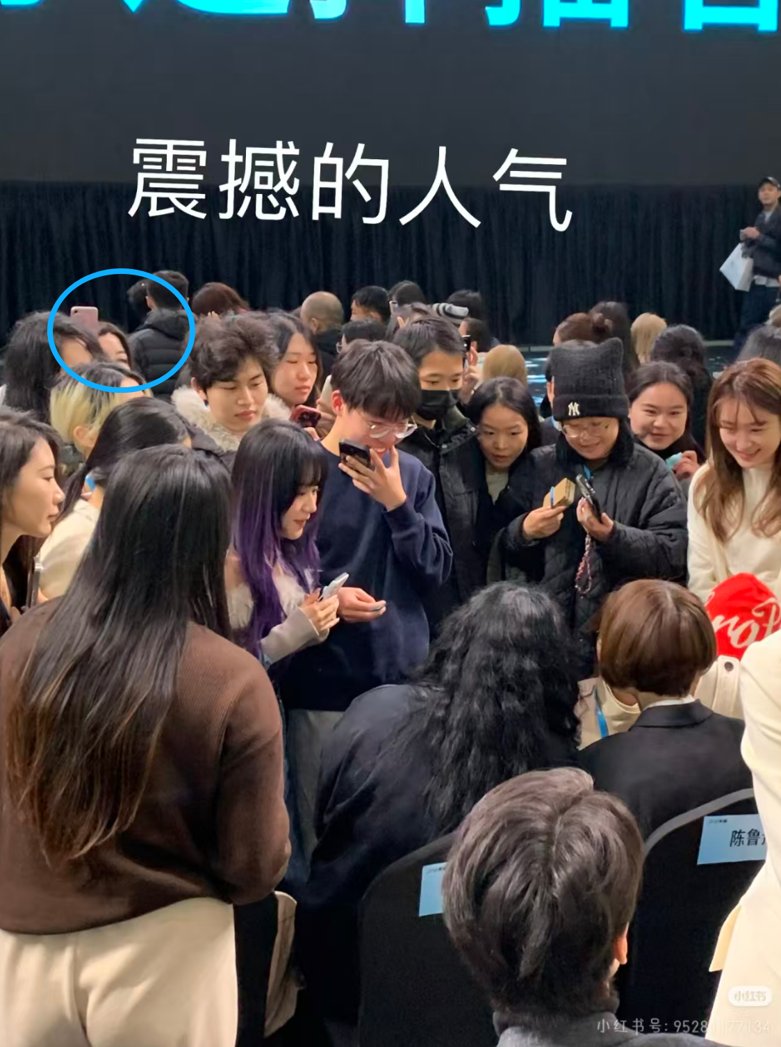 小金牙和鲁豫老师合影的时候,蓝圈里的雷达正在外围努力拍照(小手举小手机)↓