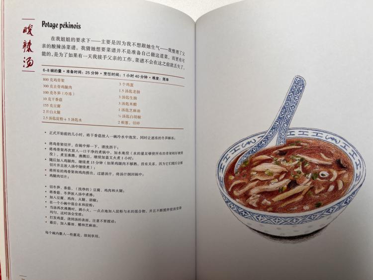 最后,附上我自己尝试过的一个复杂版本的酸辣汤菜谱,来自于《一个中国家庭的餐桌》
