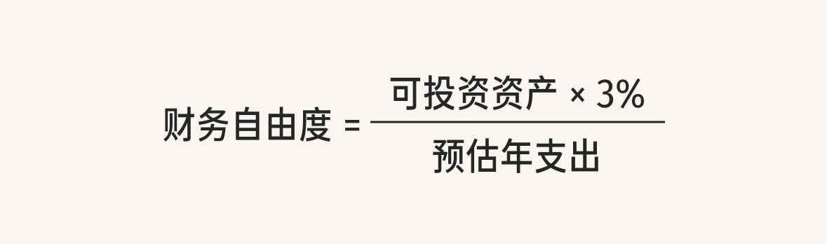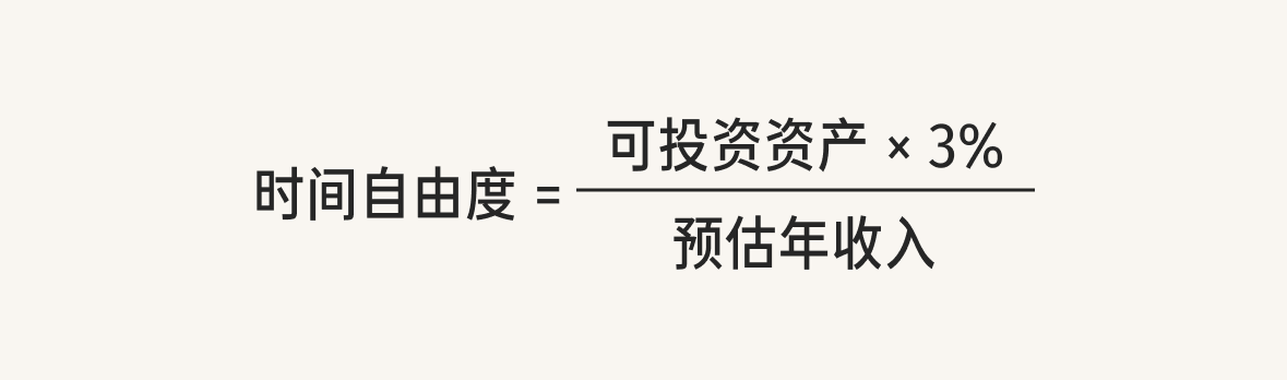 时间自由度是指个人可投资资产按照安全提取率(3%)所能提取的资金与预估年收入的比率。