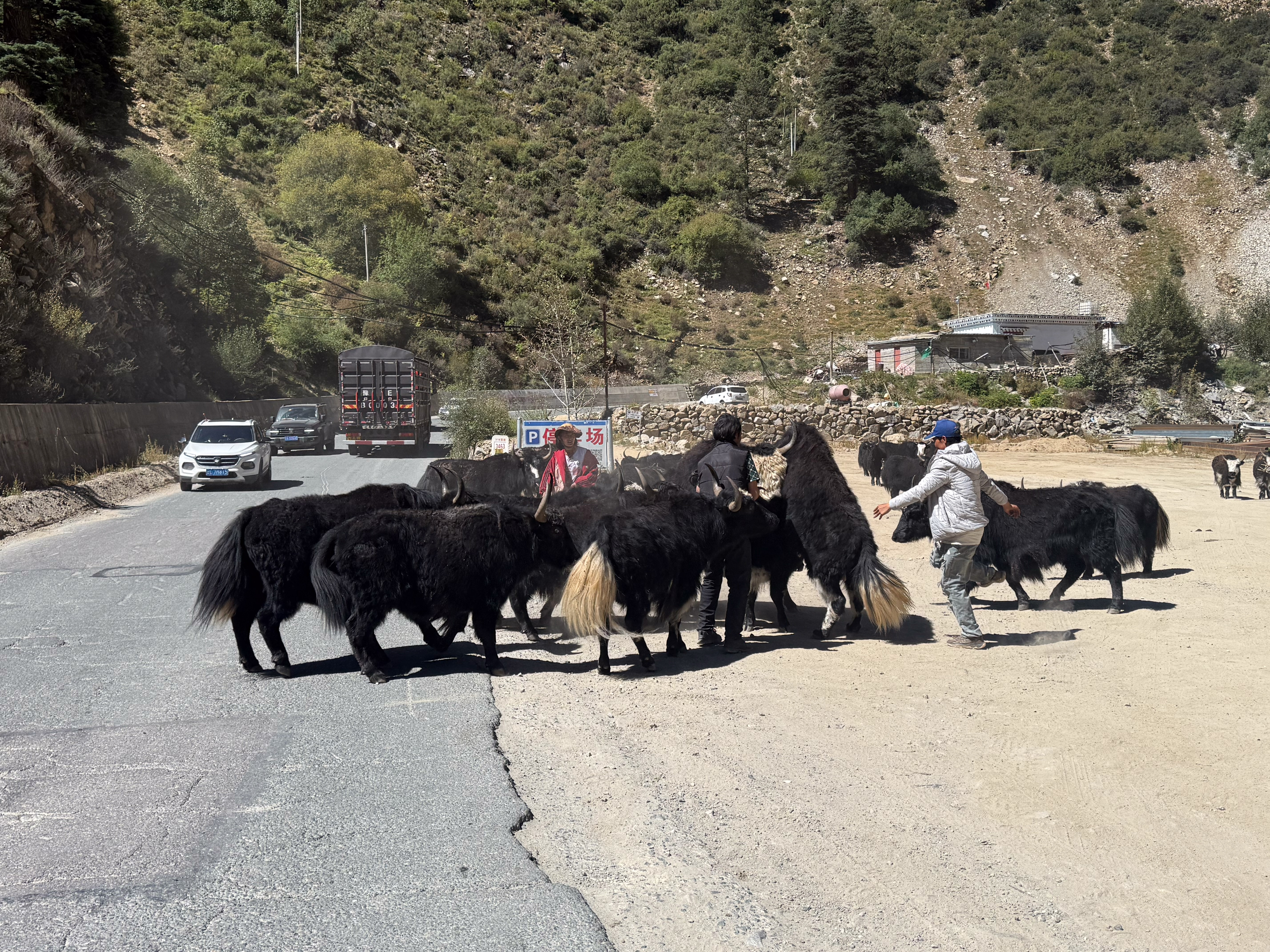 这一段路,觉巴山隧道里看不见的时间与距离,东达山永远到不了的 5000 米垭口,怒江 72 拐逼着我学会妥协与坚持。而就在这些最艰难的时刻,牦牛、岩羊、雪山、以及路边栏杆上那些陌生人留下的字,又一次次让我体会不一样的孤独与陪伴。从然乌湖的雪山倒影,到波密的牦牛肉火锅;从岗云杉林的松脂气味,到被藏狗追着拼命踩踏板;再到清晨在米拉山遇见白唇鹿,心在这条路上从来不是空的,它总是被世界用各种方式填满。