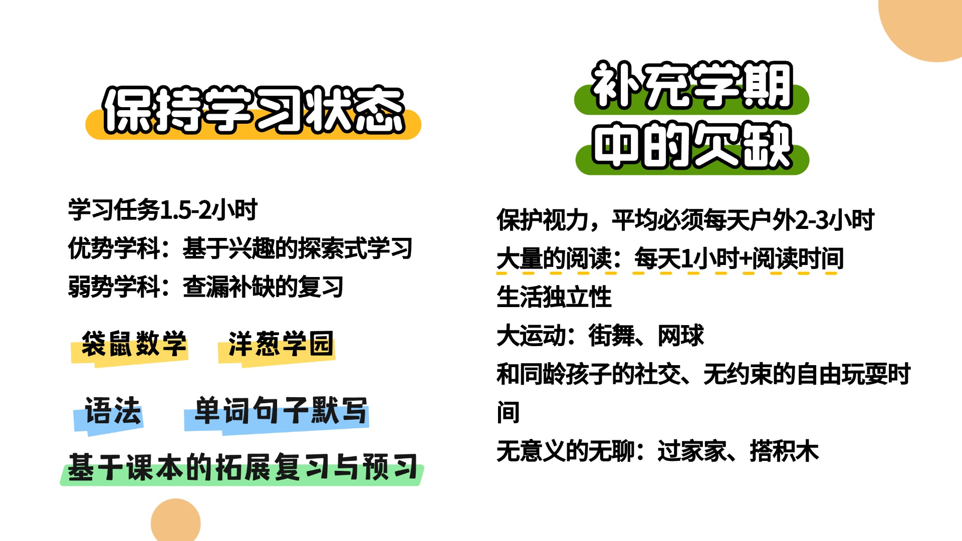 假期的主旋律:保持学习状态 + 补充学期中欠缺的全人教育与生命体验
