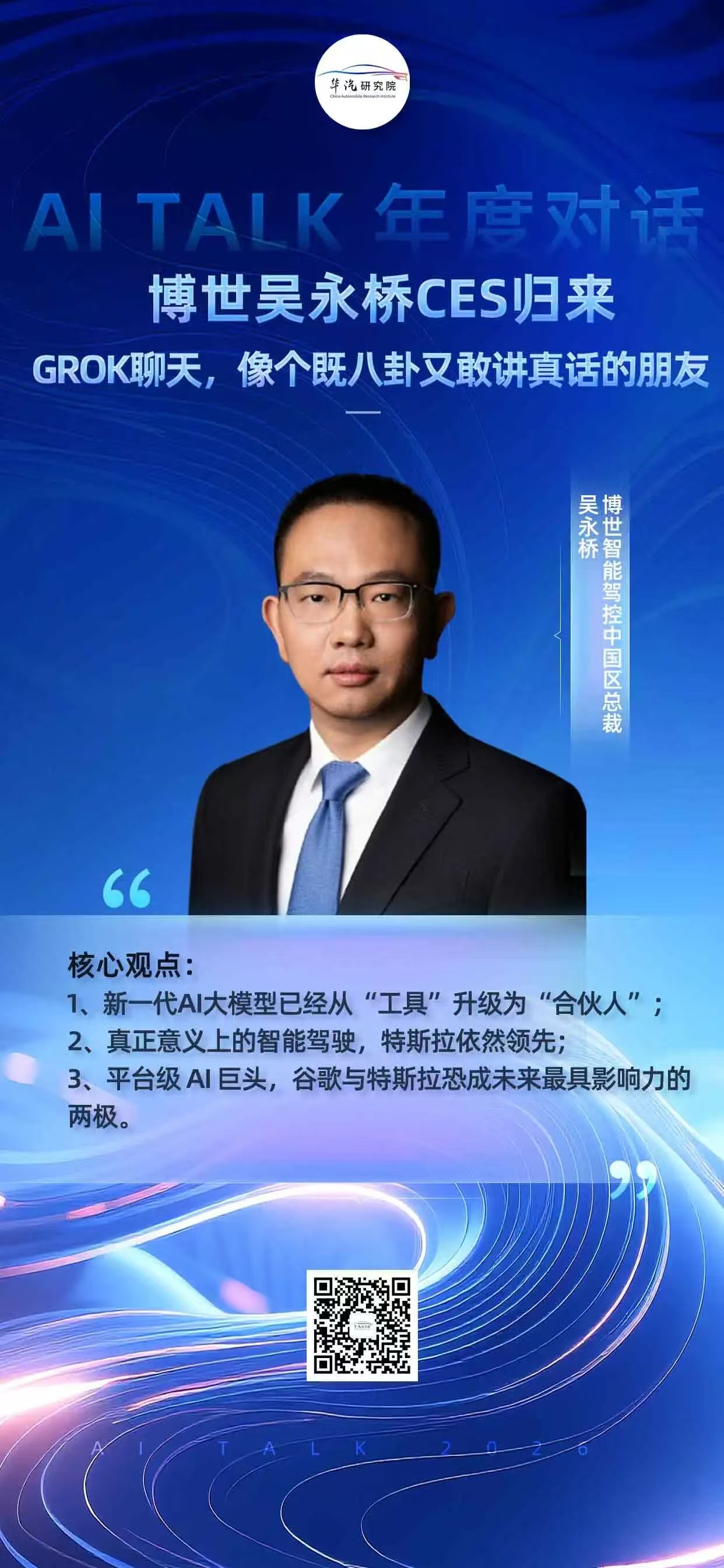 今天的节目我们邀请到了智驾圈最“真性情”、最敢吐槽、也最敢在技术上拼命的重量级大咖——博世智能驾控中国区总裁,吴永桥。 他从CES 体验完一圈回来之后,听听他的直白判断 。