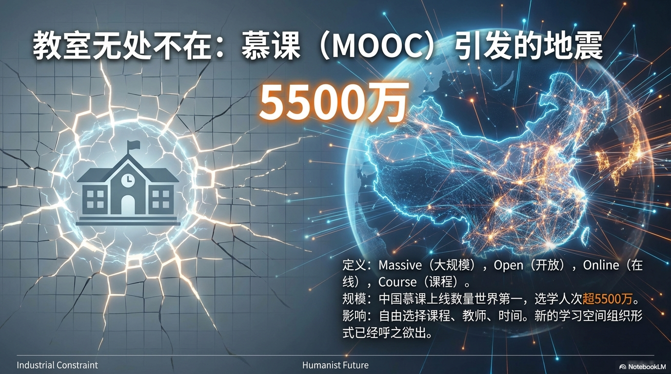 09:05 慕课(MOOC)带来的教育革命:数据揭秘在线教育如何打破围墙,让自由学习呼之欲出。