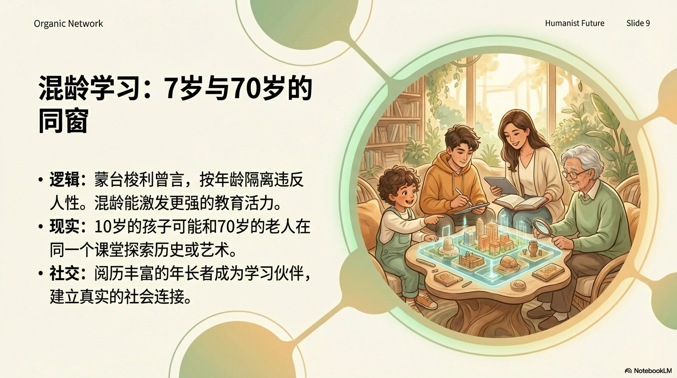 14:05 混龄学习的独特优势:借蒙台梭利的观点阐述打破年龄隔断对教育活力和能量的提升。