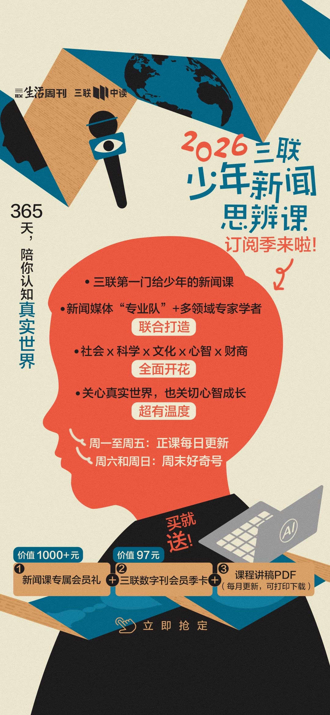 感谢《三联生活周刊》对本期节目的支持,《三联生活周刊》现已推出全新课程:《三联少年新闻思辨课,365天陪你认知真实世界》,由主编李鸿谷亲自带队,专为9-15岁的少年打造,主讲人由《三联生活周刊》资深记者、资深编辑、资深投资人、知名作家、著名学者、三联中读编辑团队组成,以时事新闻为主题,带孩子回溯新闻事件的发展脉络,用思辨的眼光去洞察事件与现象,与此同时,还有一线行业大咖带孩子了解真实行业运行逻辑。