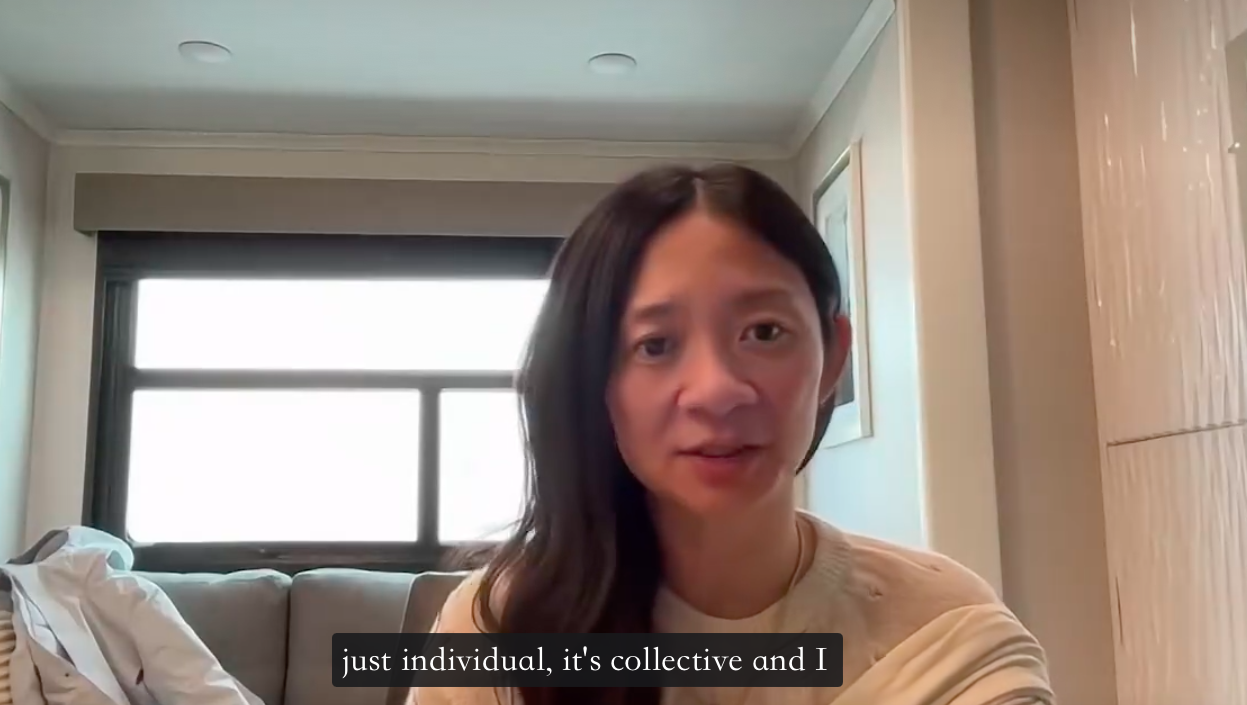 群演的共鸣:在环球剧场拍摄最后一场戏时,赵婷通过冥想引导群演,让他们感到自己不只是背景,而是“森林里的树木”。