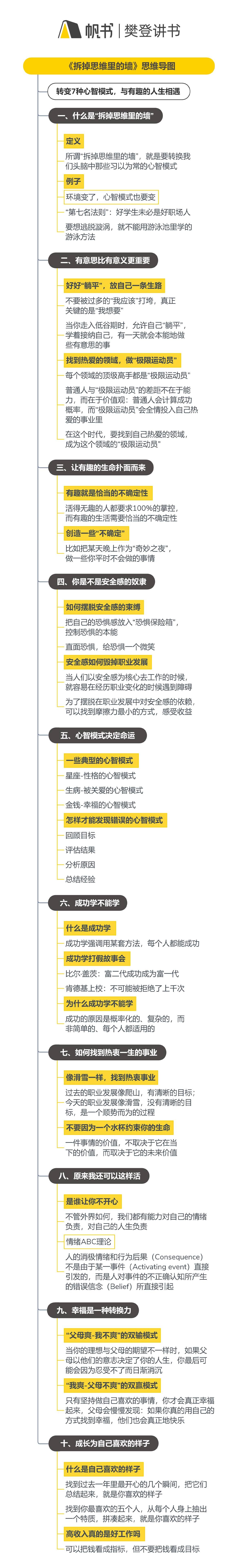 主播介绍—— 樊登樊登,帆书(原樊登读书)创始人、首席内容官。《可复制的领导力》、《低风险创业》、《陪孩子终身成长》作者。国际大专辩论赛冠军。本期嘉宾—— 古典古典,中国职业规划与个人发展专家,新精英生涯公司创始人。思维导图——《拆掉思维里的墙》