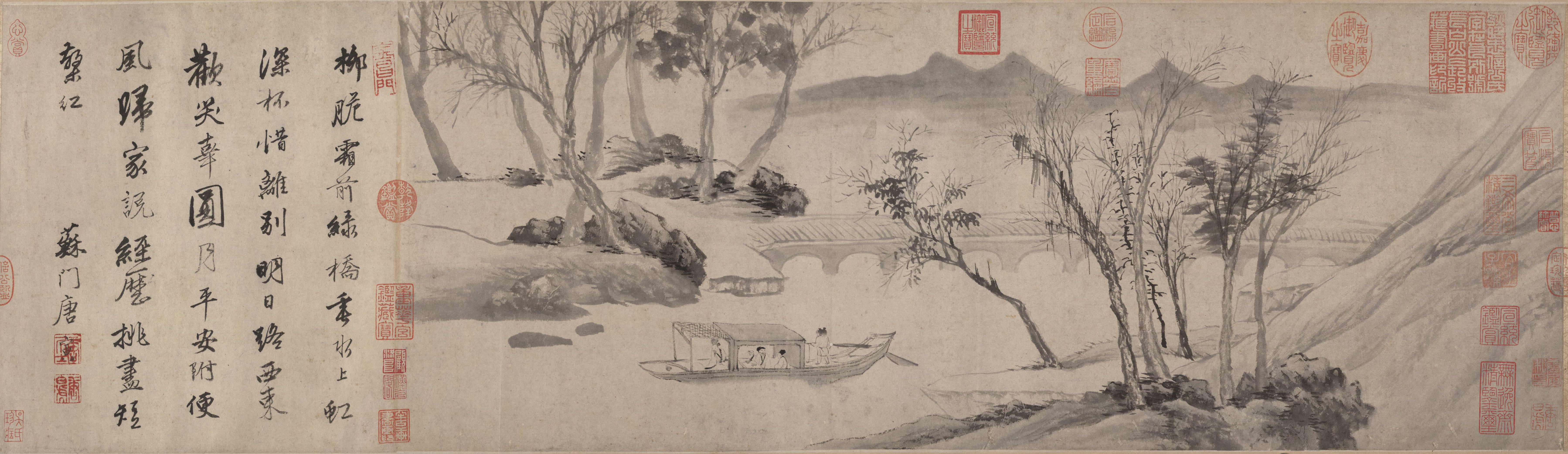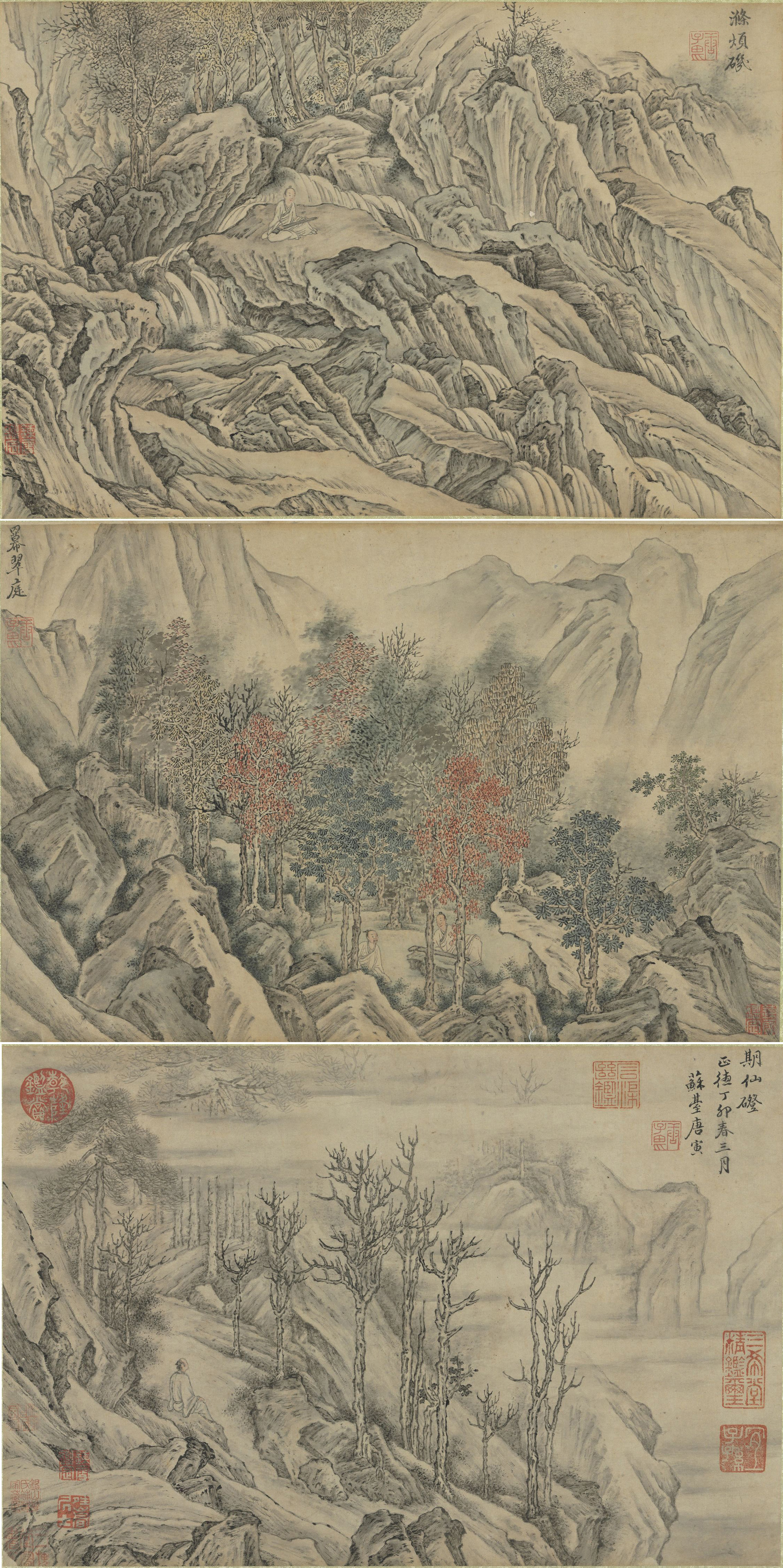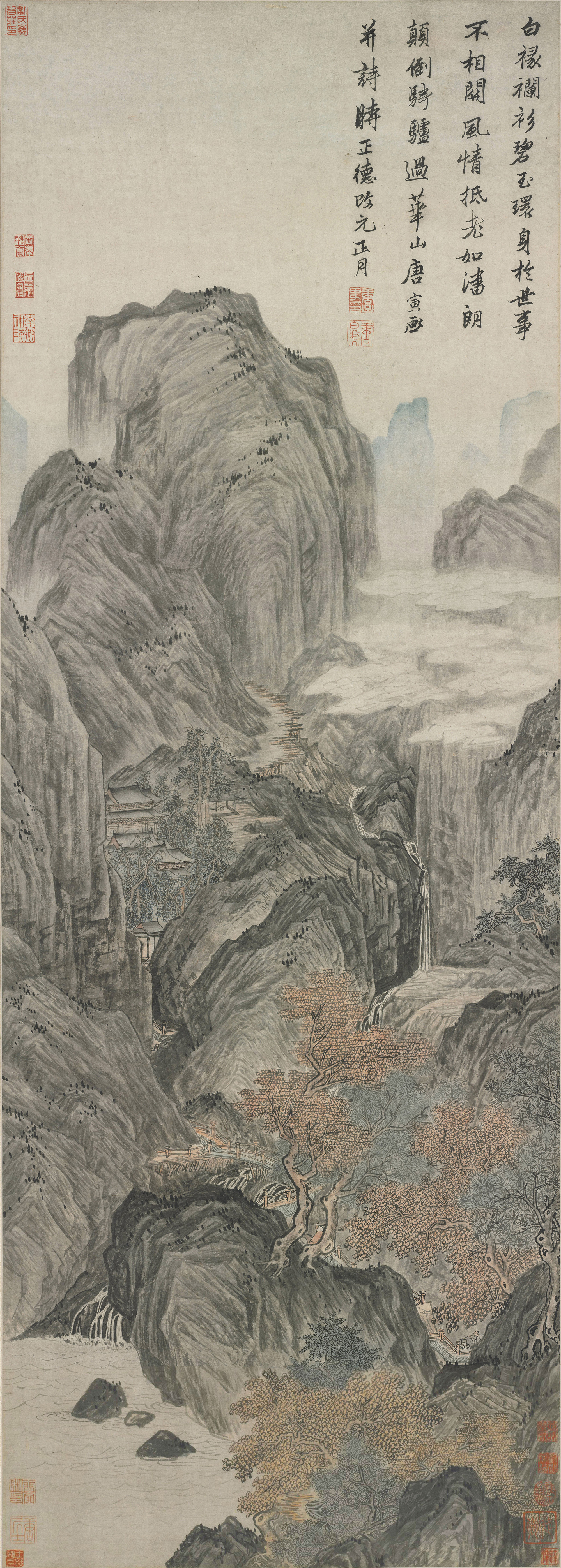 1唐寅_毅庵图2唐寅_王蜀宫妓图3唐寅_班姬团扇图4吴伟_歌舞图5唐寅_华山图6唐_卢鸿_草堂十志图(局部)7唐寅 嵩山十景图(局部)8唐寅_函关雪霁图9唐寅_垂虹别意图10唐寅_秋声赋图11唐寅_事茗图12唐寅_仿古山水册