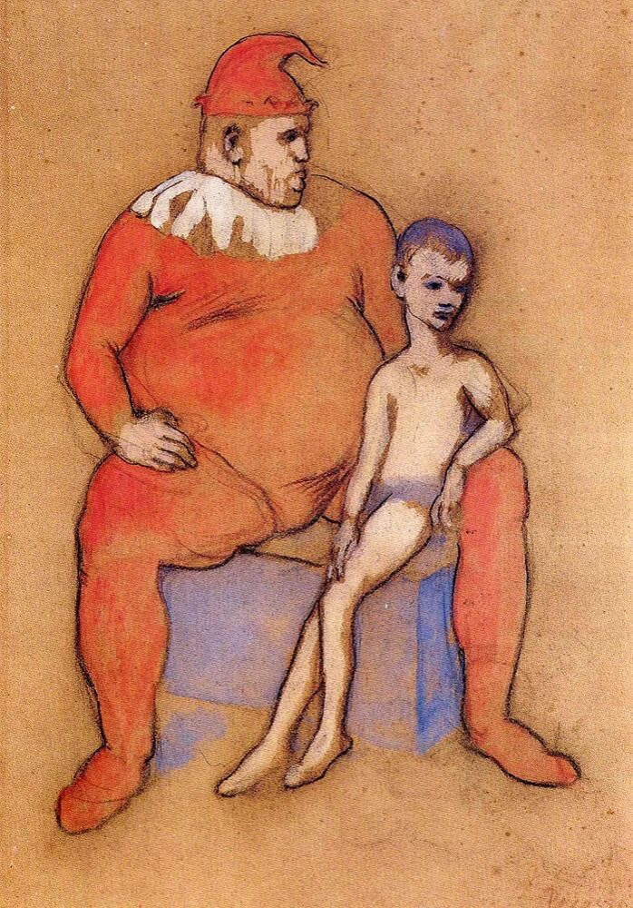 《Young acrobat and clown_小杂技演员和小丑》1905年,纸上木炭和蜡笔画,60 x 41.6 cm,私人收藏