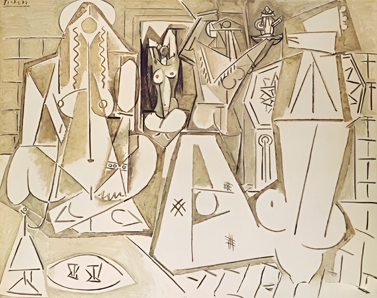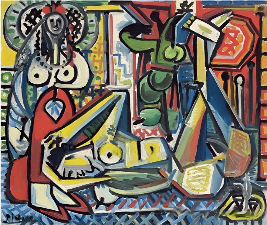 毕加索《阿尔及尔的女人(A版)》,61x72cm,1954年。沃兹沃思雅典娜艺术博物馆,康涅狄格州哈特福德