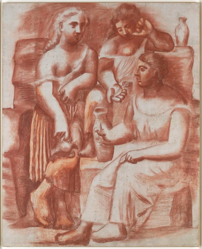 巴勃罗·毕加索,《泉水边的三个女人》,枫丹白露镇,1921年夏天,布面红色粉笔, 78 3/4 × 63 3/8″ (200× 161 cm)毕加索博物馆(非此次展出)