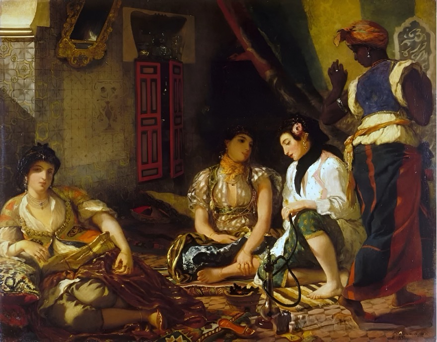 德拉克鲁瓦《阿尔及尔的女人》,布面油画,180x229cm,1934年。现藏于卢浮宫。(非此次展出)