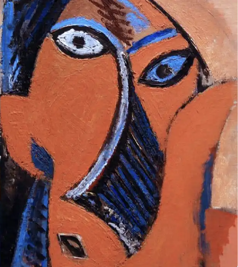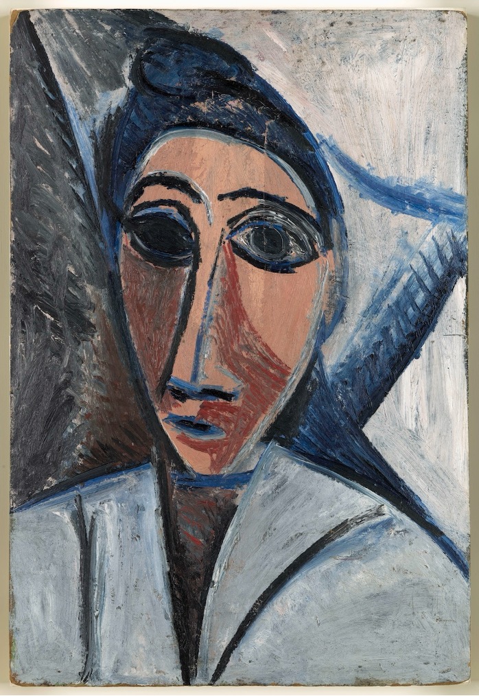 毕加索,《女人或水手胸像》(《阿维尼翁的少女》研习稿),1907,纸板油画