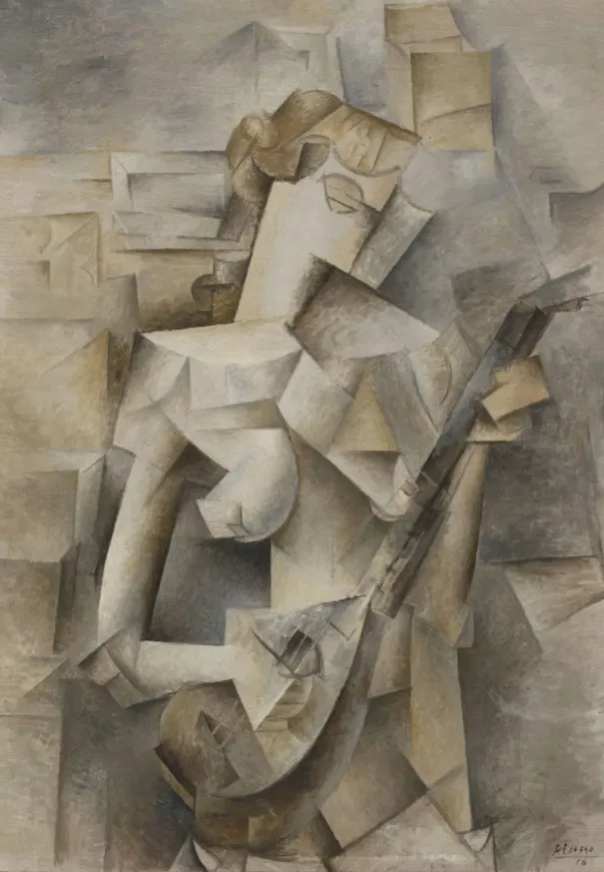毕加索《弹曼陀林的女孩》1910,100.3 x 73.6 cm布面油画,美国-纽约现代美术馆(非此次展出)
