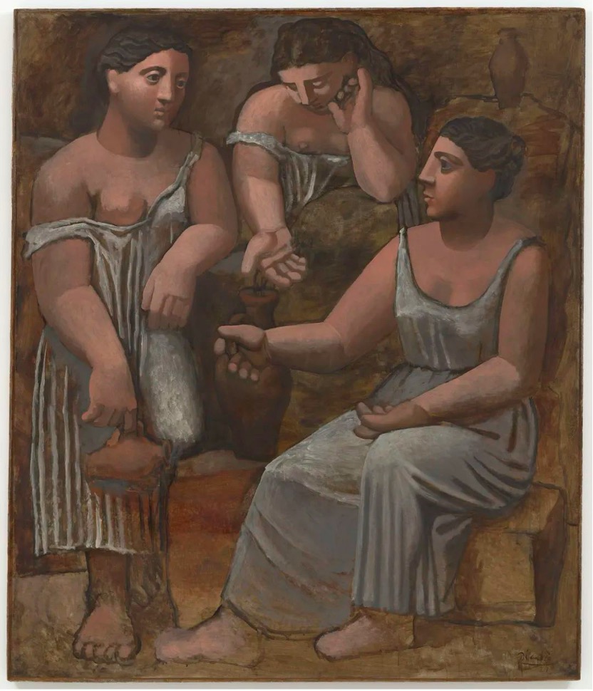 巴勃罗·毕加索,《泉水边的三个女人》,枫丹白露镇,1921年夏天,布面油画, 6′ 8 1/4″ x 68 1/2″ (203.9 x 174 cmMoMA收藏(非此次展出)