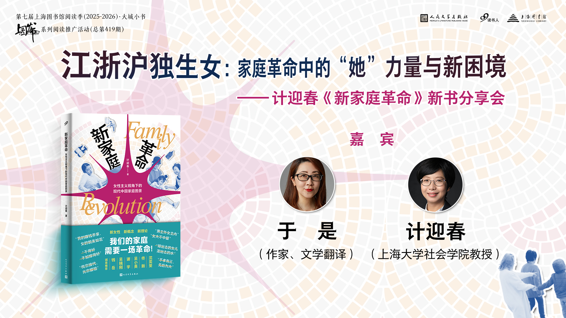 本期节目,《新家庭革命》一书的作者、上海大学社会学院教授计迎春,携手作家、文学翻译于是共同拆解“江浙沪独生女”现象的社会学内核,探寻其背后的中国家庭转型轨迹,解锁这场正在发生的 “新家庭革命” 的真实样貌。