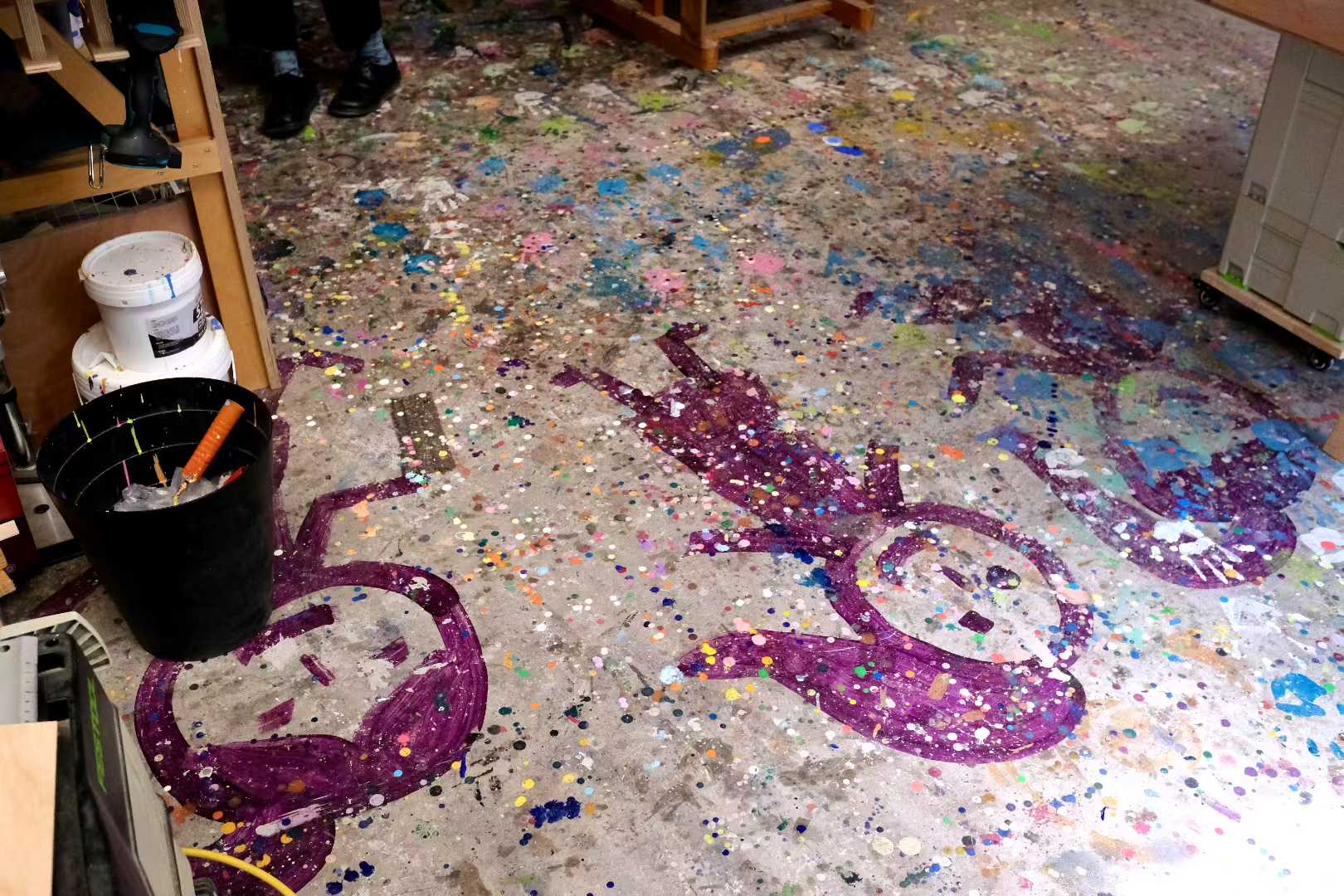 “因为我习惯站在这个位置刮。这是我的身体习惯,它留在了画里。”