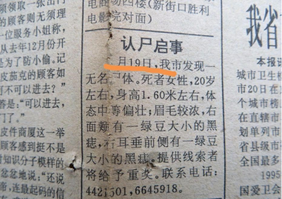 当年刊登的认尸启事