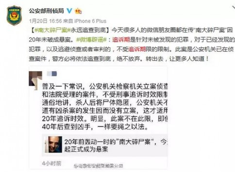 公安部表示将永远追查南大碎尸案