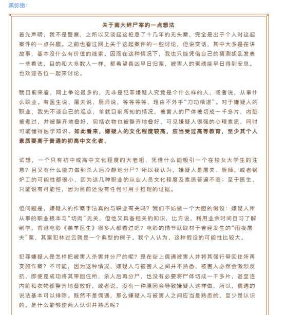 黑弥撒关于南大碎尸案帖子的内容01
