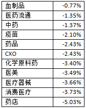 上周医药跑输大盘,从资金流向角度,继脑机接口和JPMorgan大会催化之后,市场资金更多聚集在有色金属化工等中上游板块,医药整体受资金跷跷板效应影响再次回调测试前低。从医药细分子版块看,上周医药内部整体跟随大盘风格,泛红利板块有相对收益,血制品、医药流通和中药跑赢全指医药卫生指数,疫苗板块在周中受印度病毒信息影响大涨后回调,整体略跑赢医药指数。纵观整个1月份,全指医药卫生指数上涨1.5%,药店、消费医疗、CXO、化学原料药、医疗器械、医药流通跑赢全指医药卫生指数。