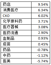数据来源:银华基金,以上子行业划分标准,选取全指医药卫生指数的成分股,依据上市公司主营业务和经营特点,并综合参考申万和中信的二级三级行业划分情况制定而成,供投资者参考。