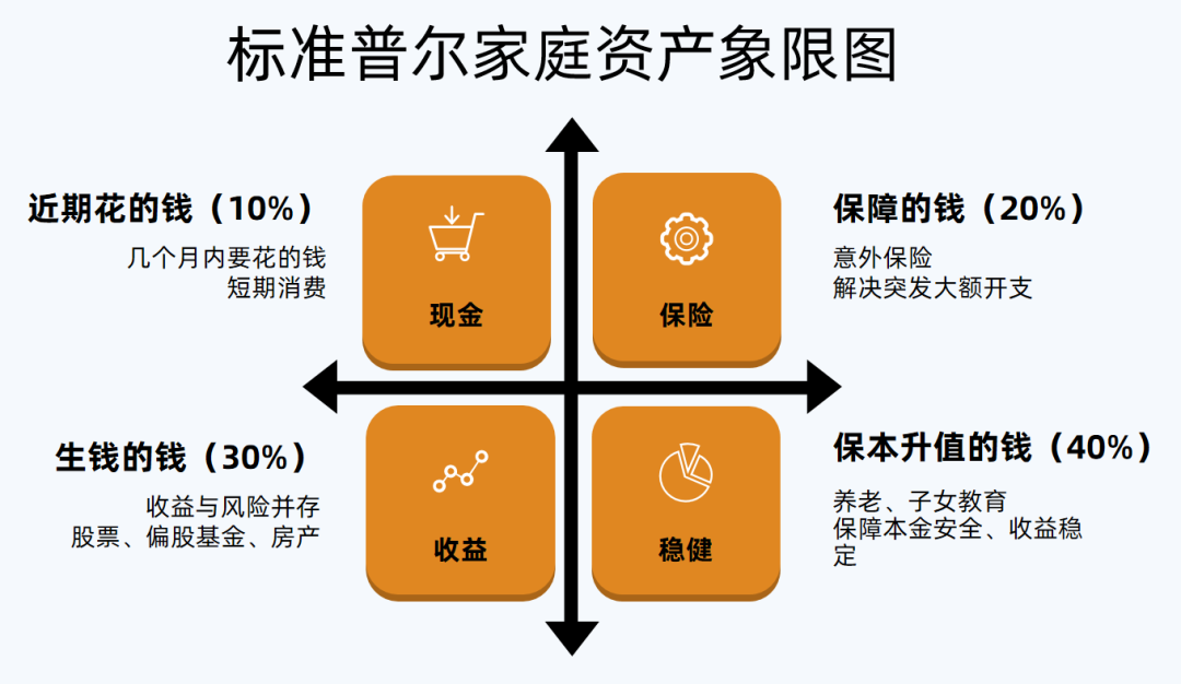 全球最具影响力的信用评级机构“标准普尔”调研全球十万个资产稳健增长的家庭,分析总结出他们的家庭收入结构,提出了公认行之有效的家庭资产分配方式。