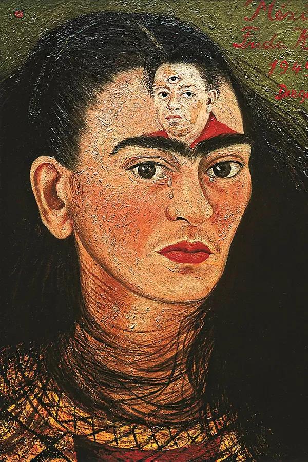 《迭戈和我》画于1949年,是弗里达·卡罗创作的一幅泪流满面的自画像,画中迭戈·里维拉的头像就位于她的额头上。