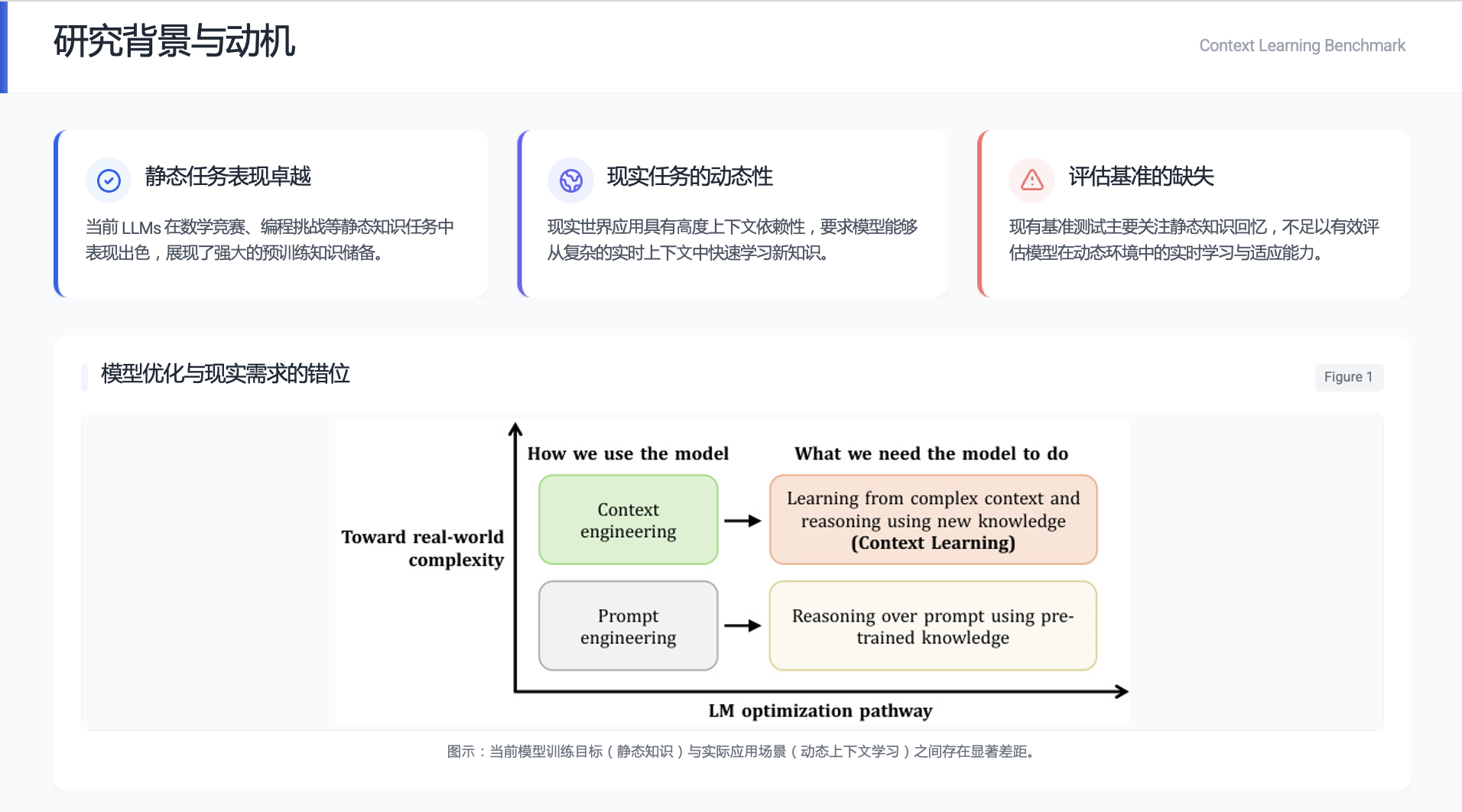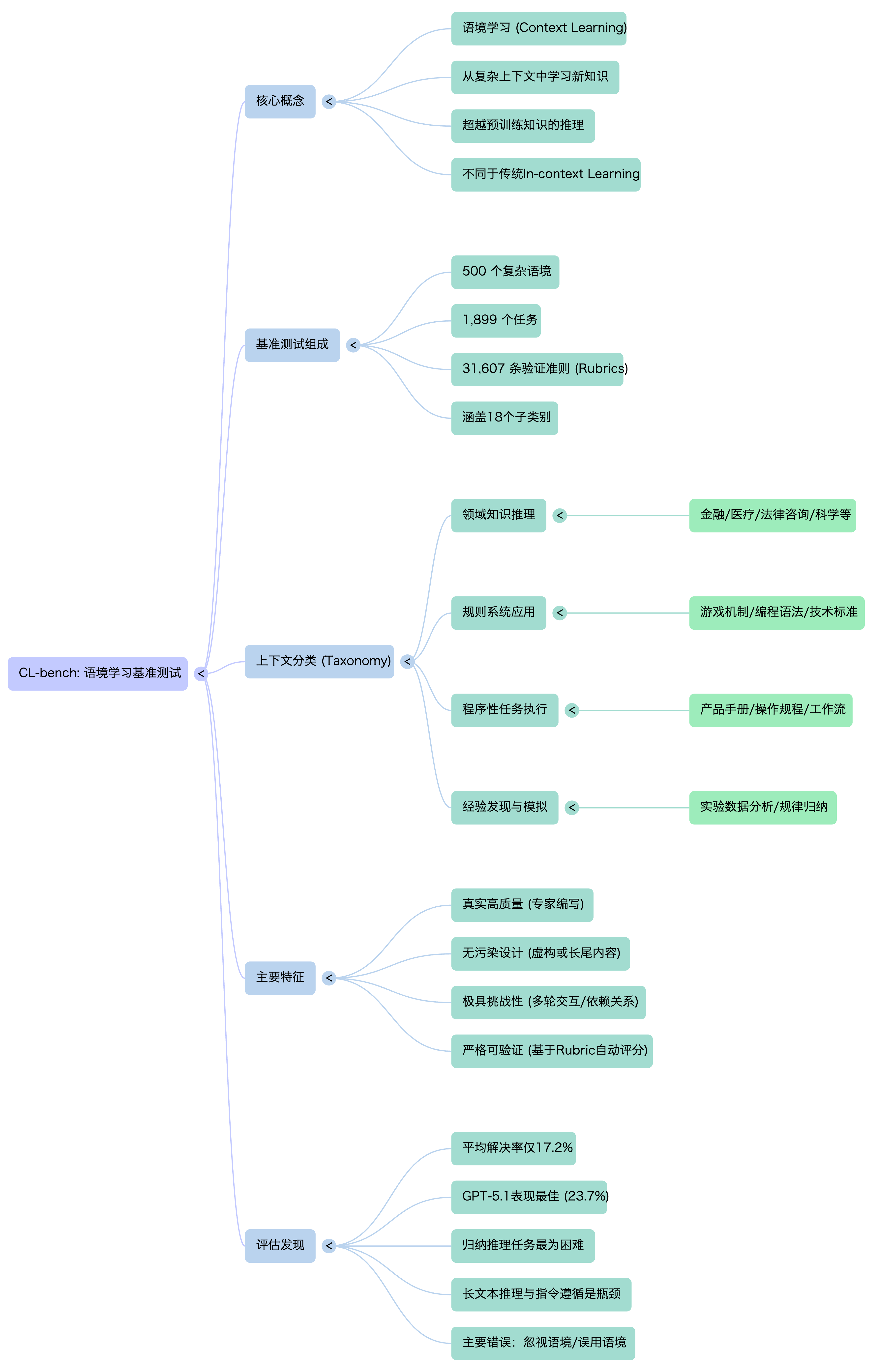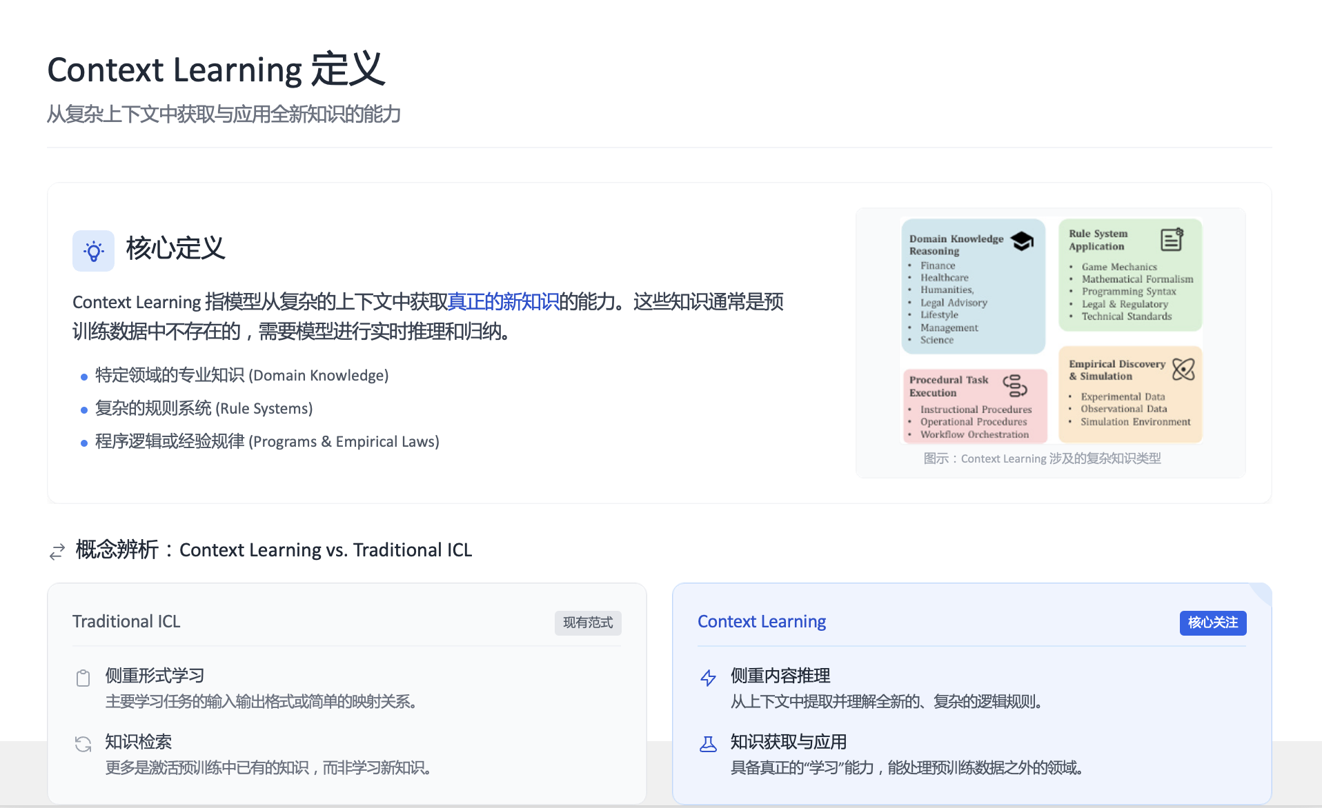 - 什么是 Context Learning? 指模型能够从给定的、可能非常冗长复杂的上下文材料中,主动学习其中包含的全新知识体系(如一个新的游戏规则、一门小众编程语言的语法、或从实验数据图表中总结出的物理规律),并利用这些知识来推理和解决具体问题。