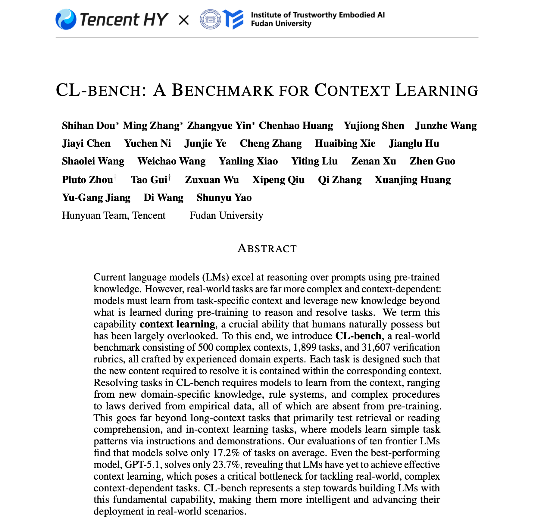 本期内容基于姚顺雨在腾讯的第一篇论文:CL-bench: A Benchmark for Context Learning (3 Feb 2026) 的解读分享。