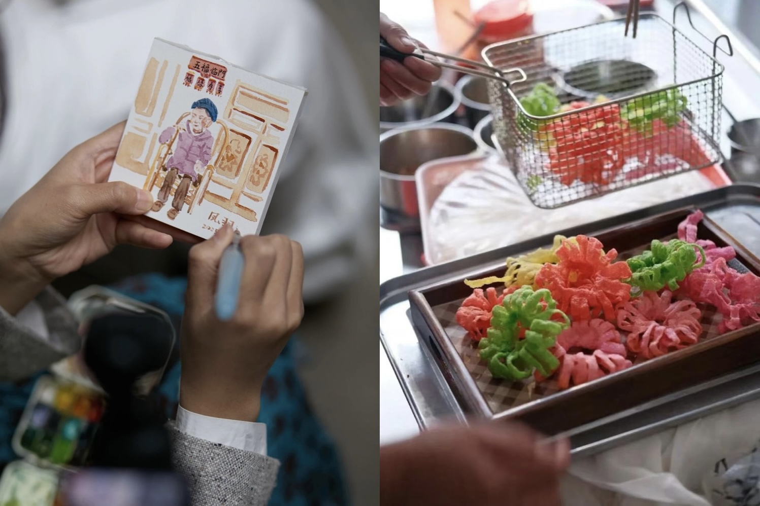 8.志愿者正在创作小插画 & 奶奶厨房里的白族传统吃食米干兰