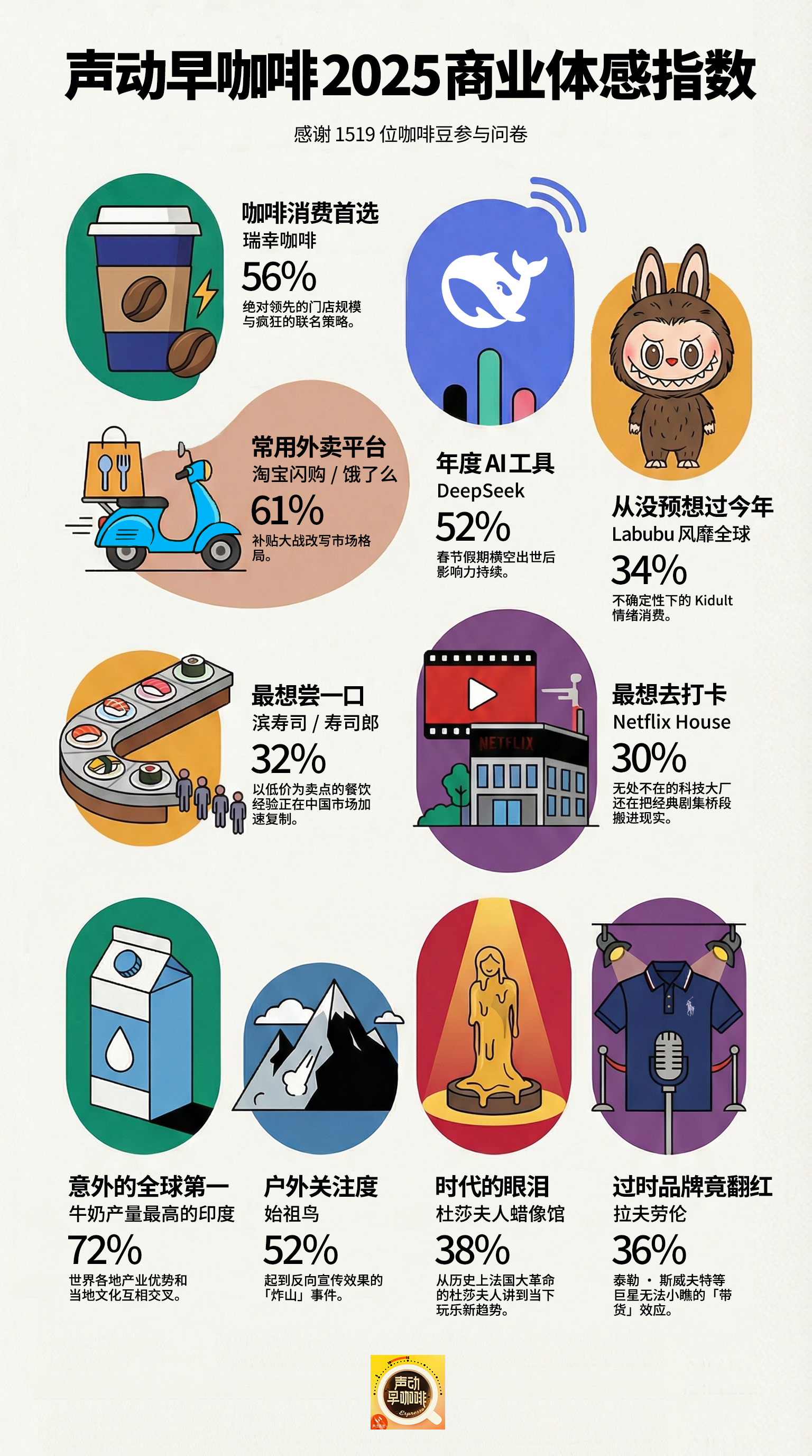 如果你对其他咖啡豆在「2025 商业体感问卷」中的选择感兴趣,可以前往「声动早咖啡」的小红书账号,查看完整的调查问卷结果。