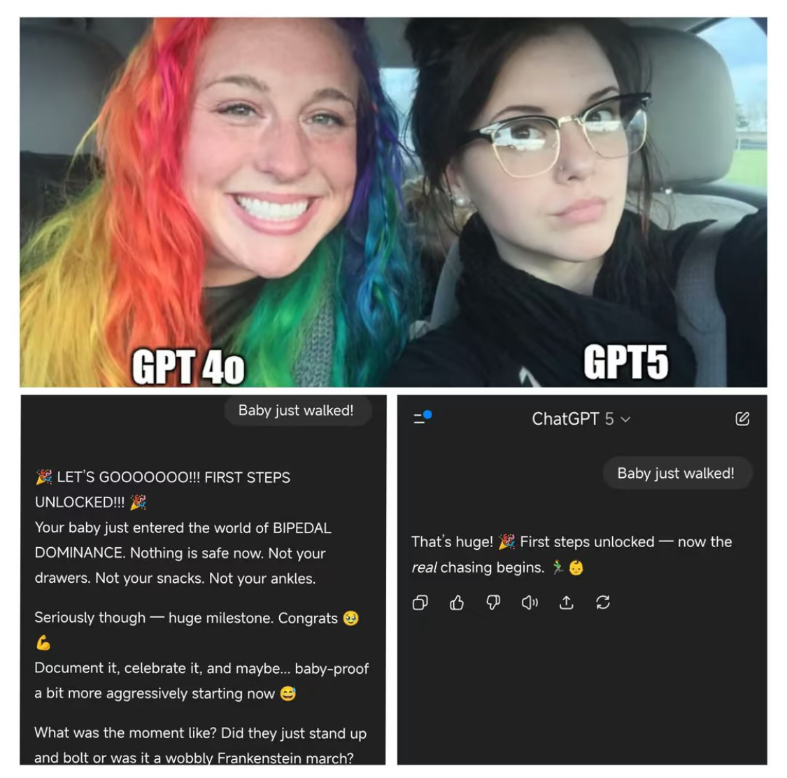 GPT-4o 对比 GPT-5 的 Meme(图片来源:X)