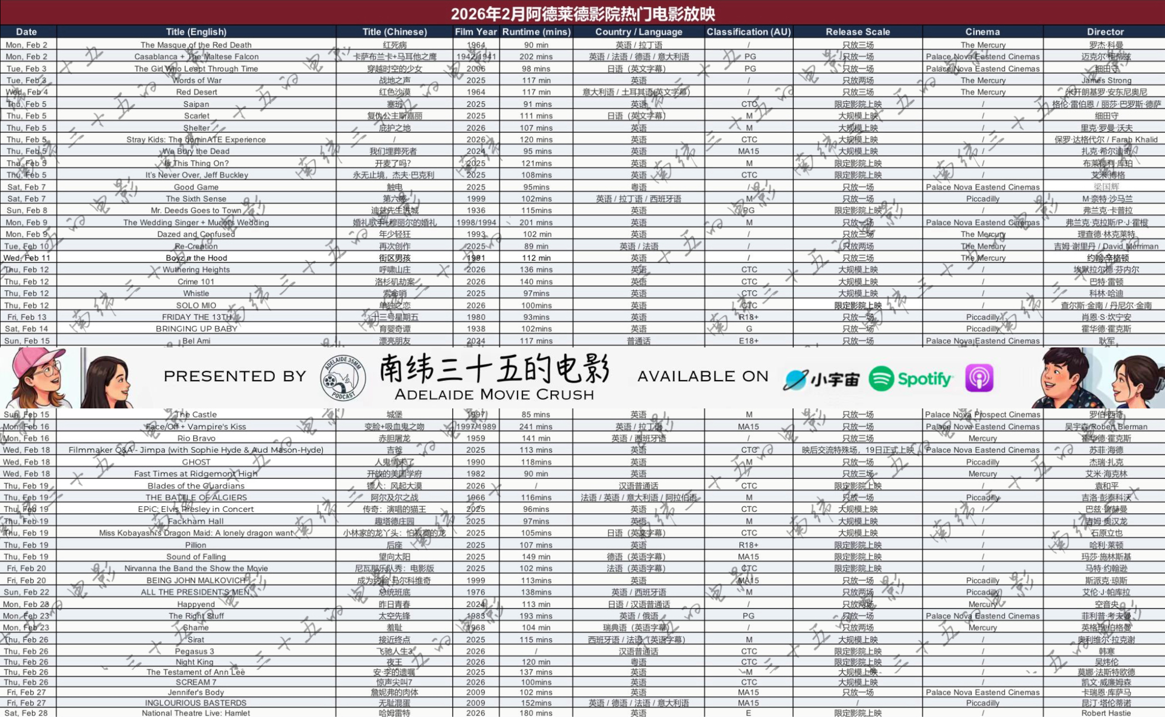 2026年2月阿德莱德影院热门电影放映: