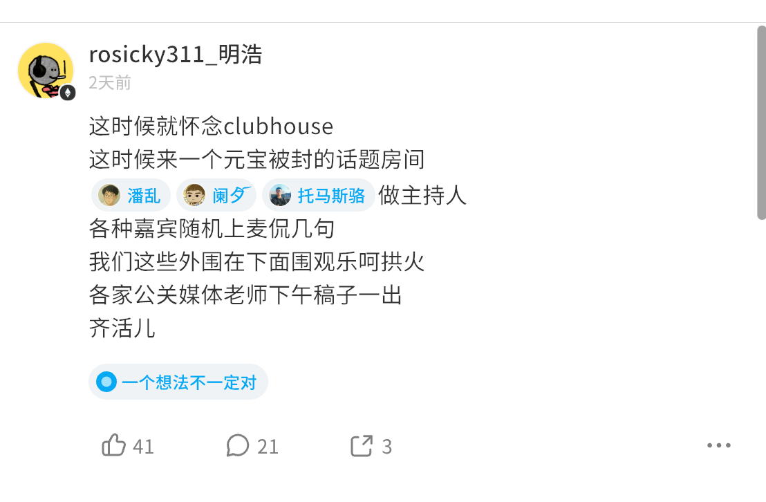 元宝春节红包被微信封发生在2月4号,当天我发了条即刻: