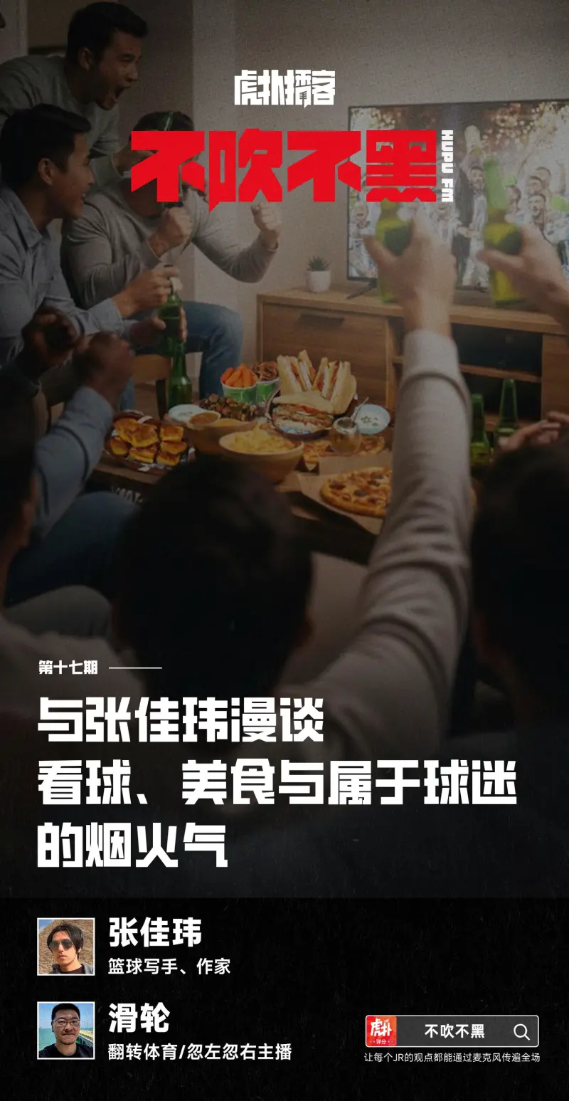 本期节目为虎扑自制播客《不吹不黑》的第十七期内容,我们邀请到了著名篮球写手和作家张佳玮,和主持人滑轮一起聊聊球迷们共同的记忆场景:球赛与美食,边看边吃,人生至乐。张佳玮前不久出版了他的美食专著《一个人吃饭,也要好好吃》,作为资深体育迷和美食写手,他对如何享受球迷们专属的看球烟火气,有很多话想说。欢迎各位收听。【时间轴】