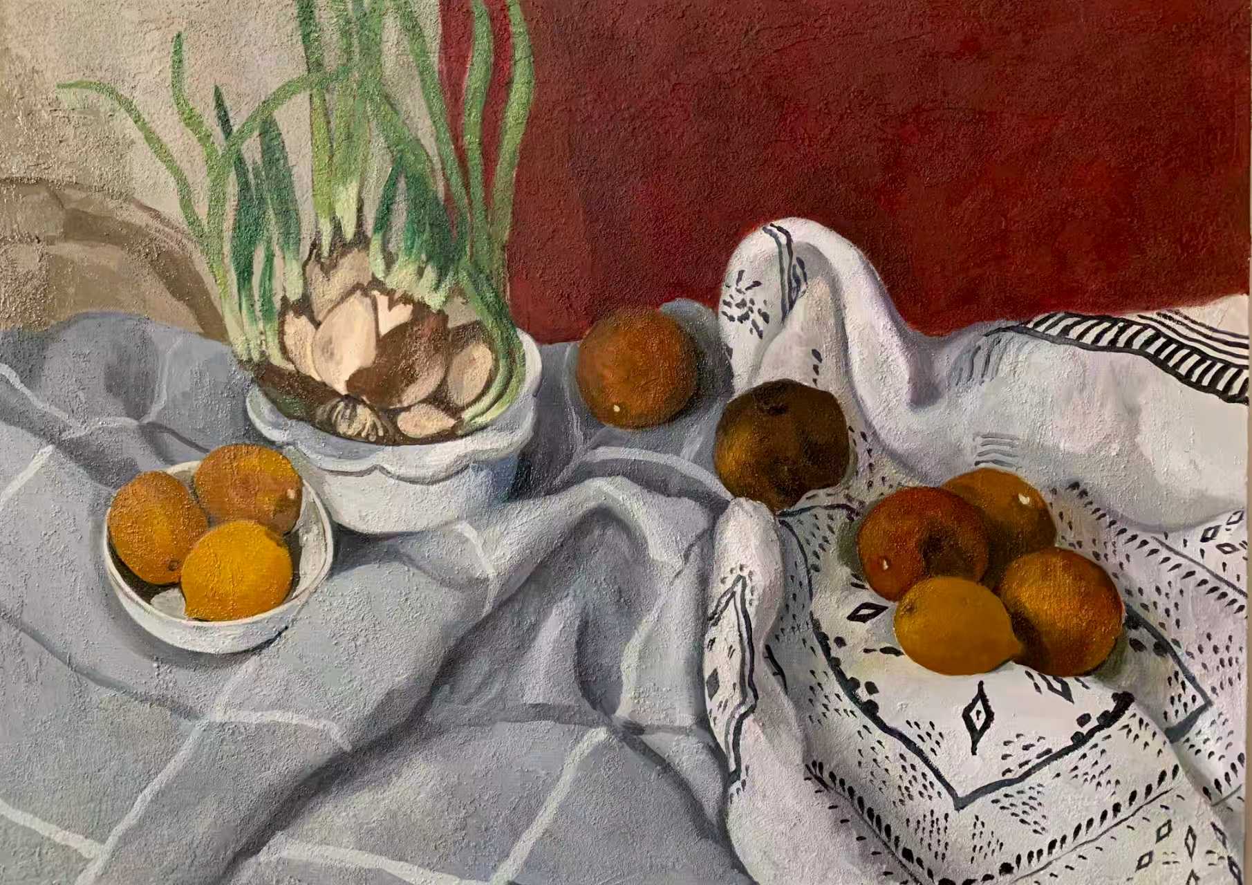 抑抑目前投身到色彩绘画的研究,她看重色彩的并置与叠压,将叠压层数框定在三遍,想在有限维度中寻找精准的平衡。