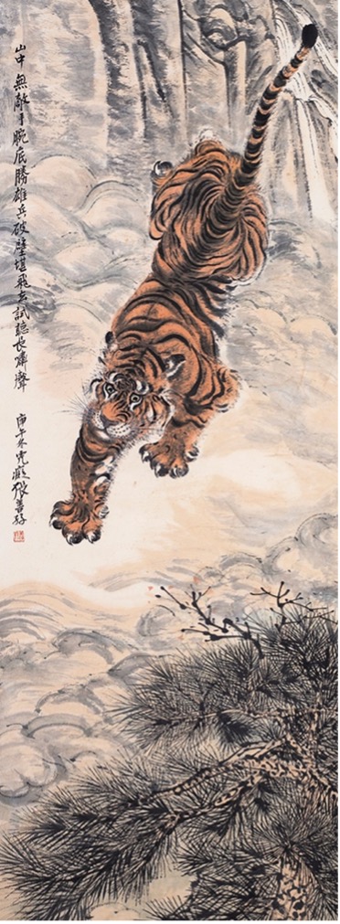 张善孖,虎痴,与弟张大千共创大风堂,1938年入天主教,1940年纽约作《飞虎图》而有飞虎队之名,同年逝。善武术气功,天人合一,与时偕行,是一画开天的大画家。