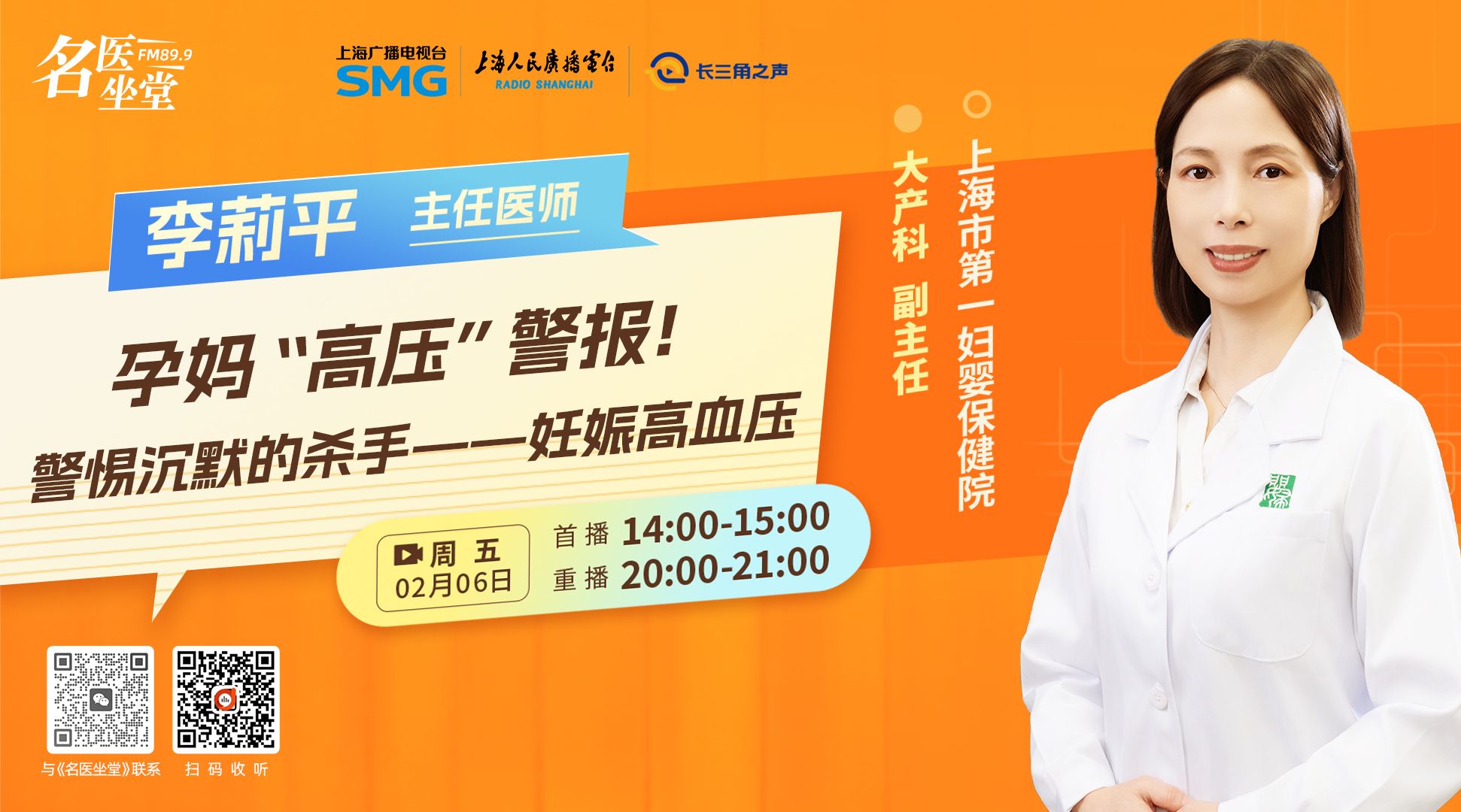 本期节目,为您邀请到上海市第一妇婴保健院大产科副主任 李莉平 主任医师,和您聊聊“孕妈‘高压’警报!警惕沉默的杀手——妊娠高血压”。