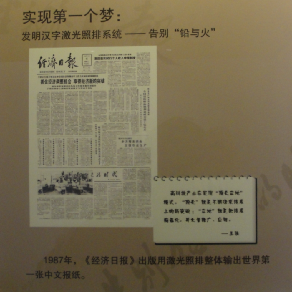 ▲ 《经济日报》用激光照排输出世界第一张中文报纸(王选事迹陈列馆)