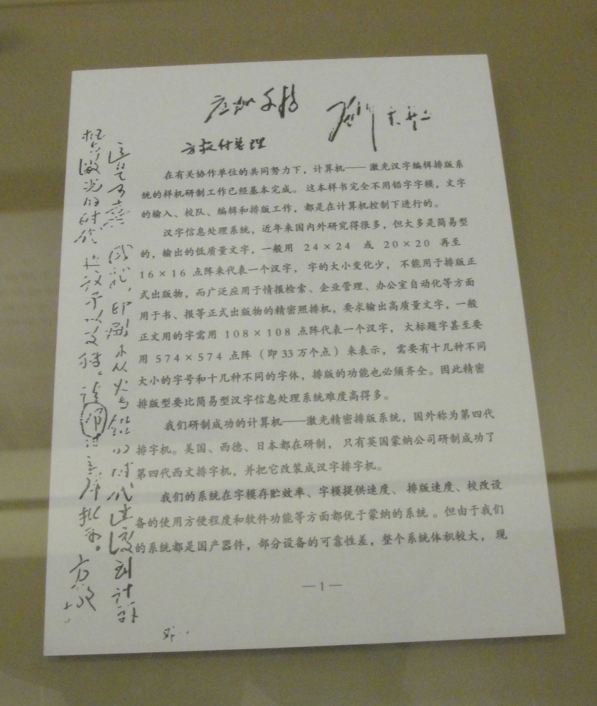 ▲ 邓小平对王选项目的批示(王选事迹陈列馆)