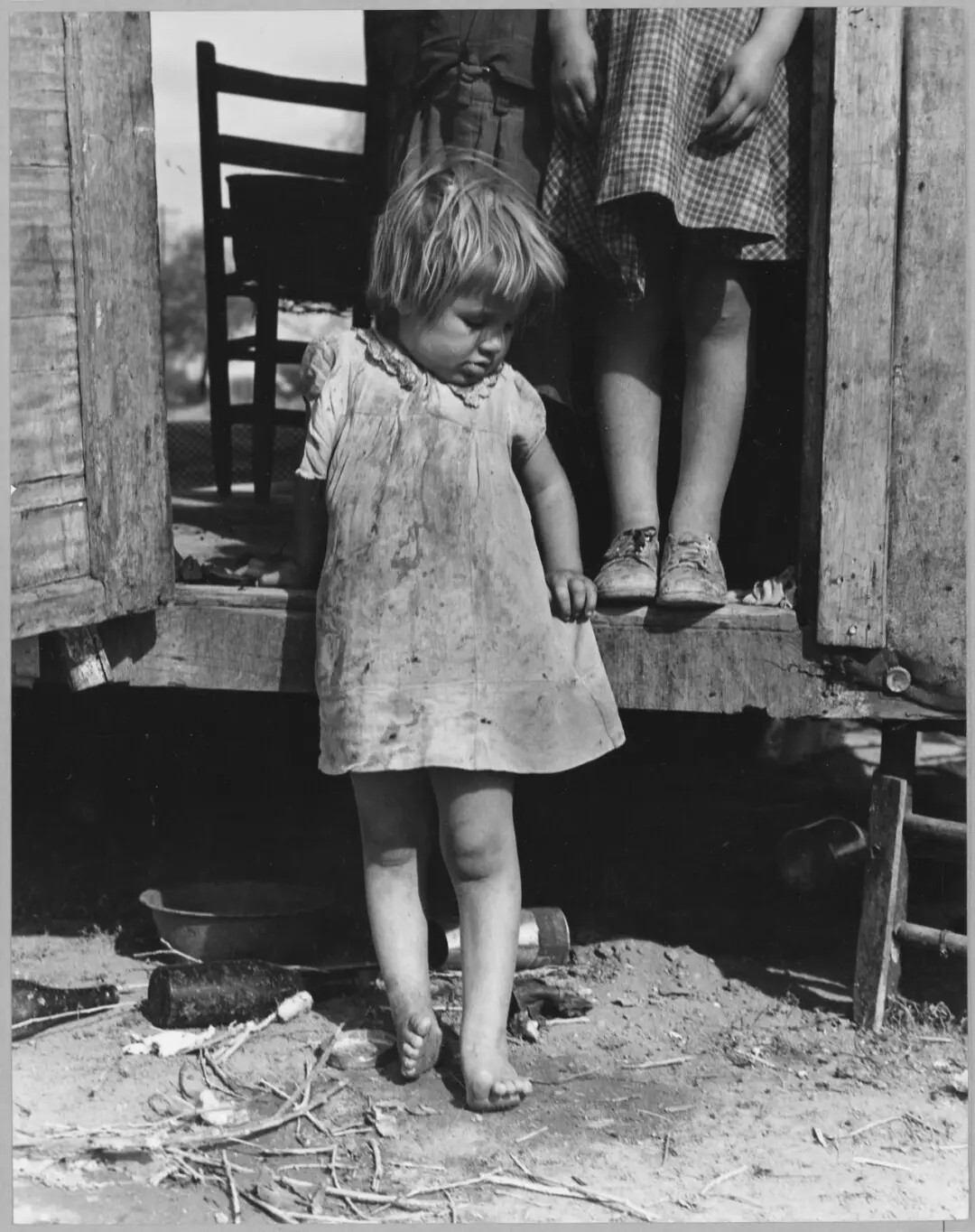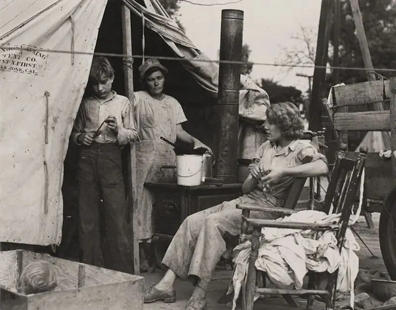 因为自己腿脚的缘故,这份独特的生命体验,让Dorothea Lange 的创作之路始终绕不开“共情”二字。20岁时,她在纽约学摄影,跟着克拉伦斯·怀特教授修行,后来揣着一台相机想环游世界,却在旧金山停下脚步——这座城市的多元与鲜活留住了她,1919年她开起了自己的肖像工作室,为名流雅士定格精致瞬间。1929年大萧条的寒流席卷全美,当她看着街上游离失所的人们,再对比工作室里精心打扮的主顾,这令她心灵备受冲击,她突然觉得:“相机不该只记录美好,更该成为照见真相的镜子。” 于是她关掉工作室,扛着沉重的大画幅相机,走进了迁徙的流民队伍、荒芜的农场、拥挤的难民营,这一走,就是一辈子。这中间就包括最动人心魄的《移民母亲》的诞生。